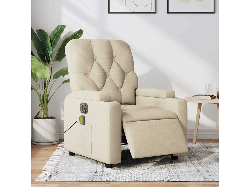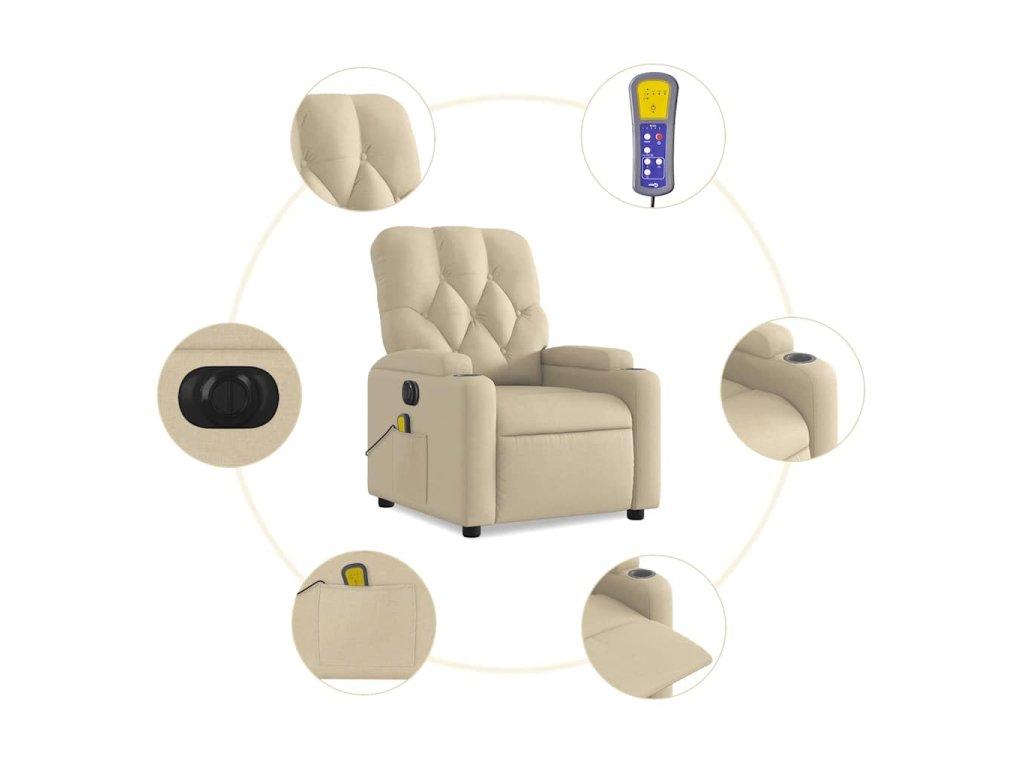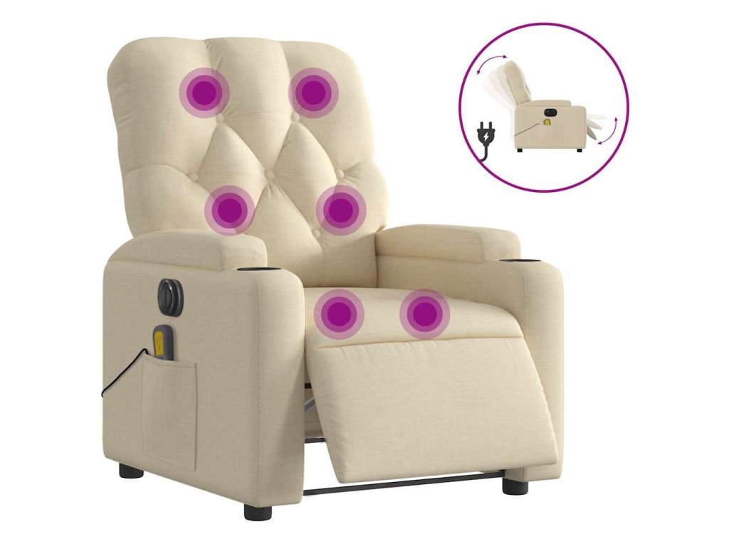 Elektrické masážní polohovací křeslo krémové textil 3204707