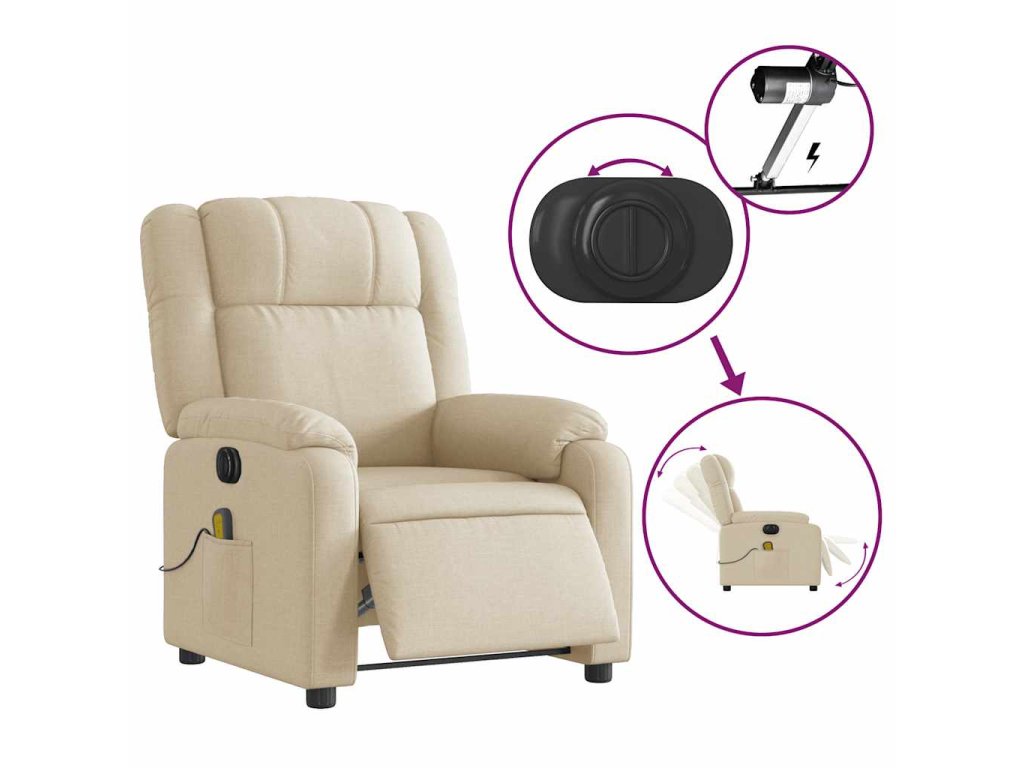 Elektrické masážní polohovací křeslo krémové textil 3205199