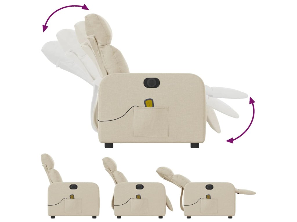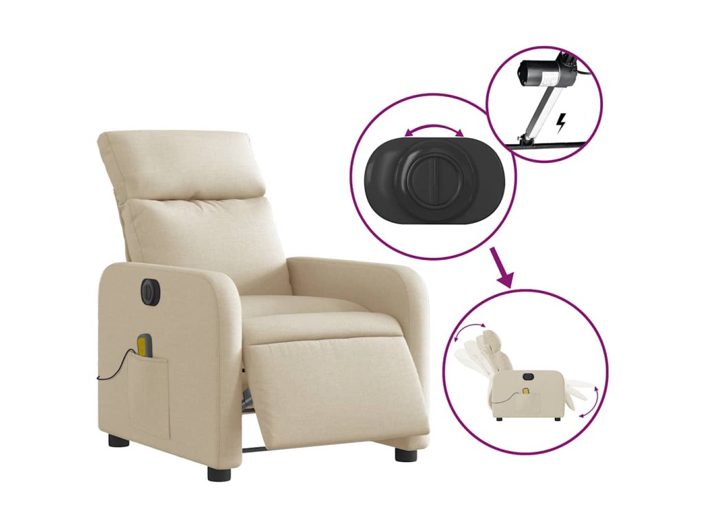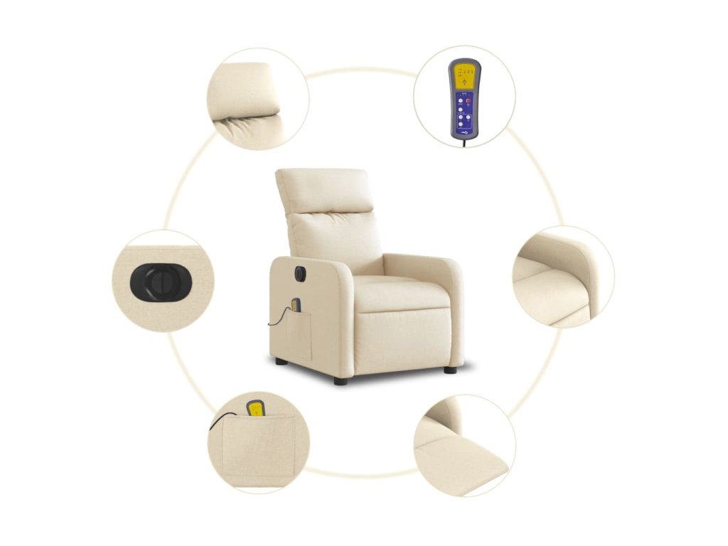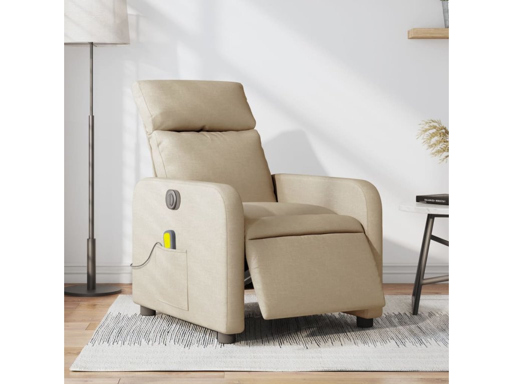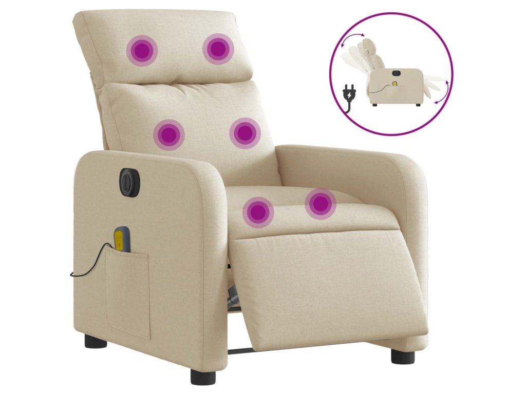 Elektrické masážní polohovací křeslo krémové textil 3206698