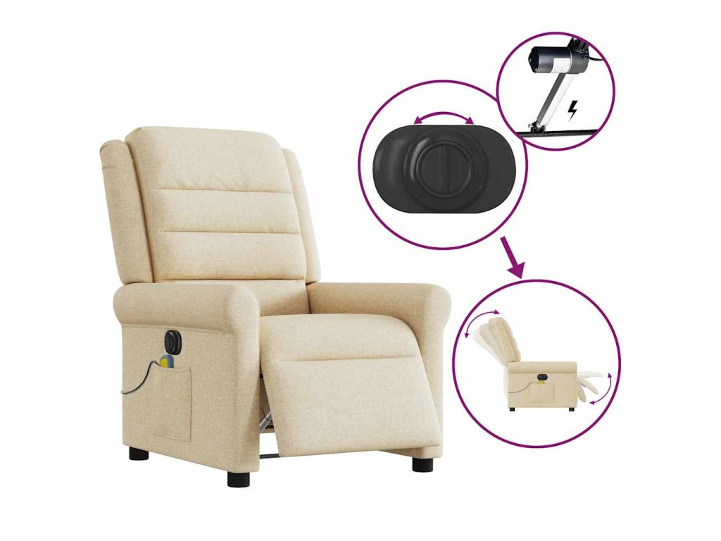 Elektrické masážní polohovací křeslo krémové textil 3303312