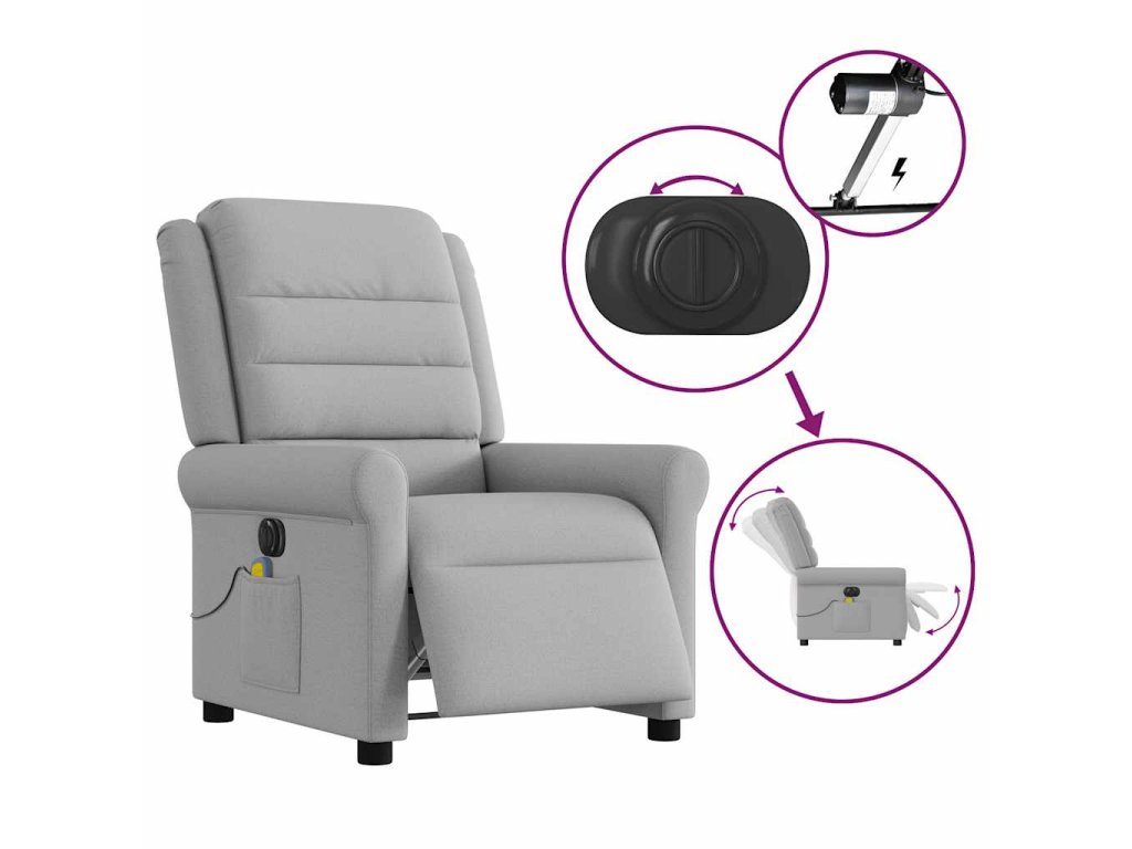 Elektrické masážní polohovací křeslo obláčkově šedé textil 3303313