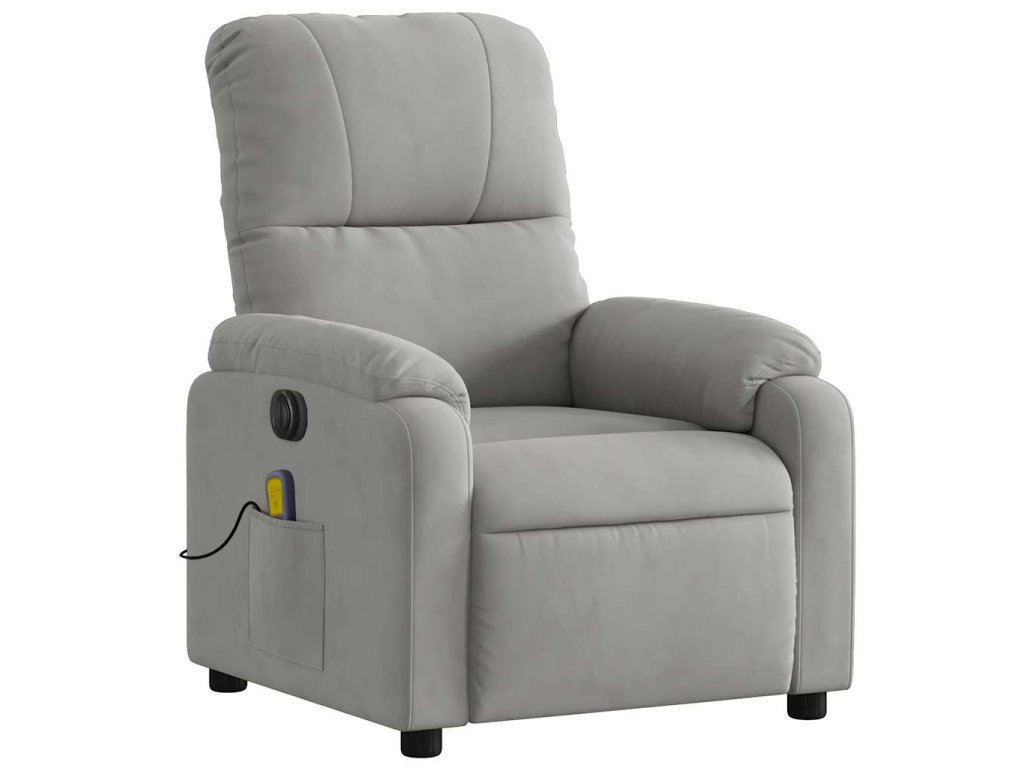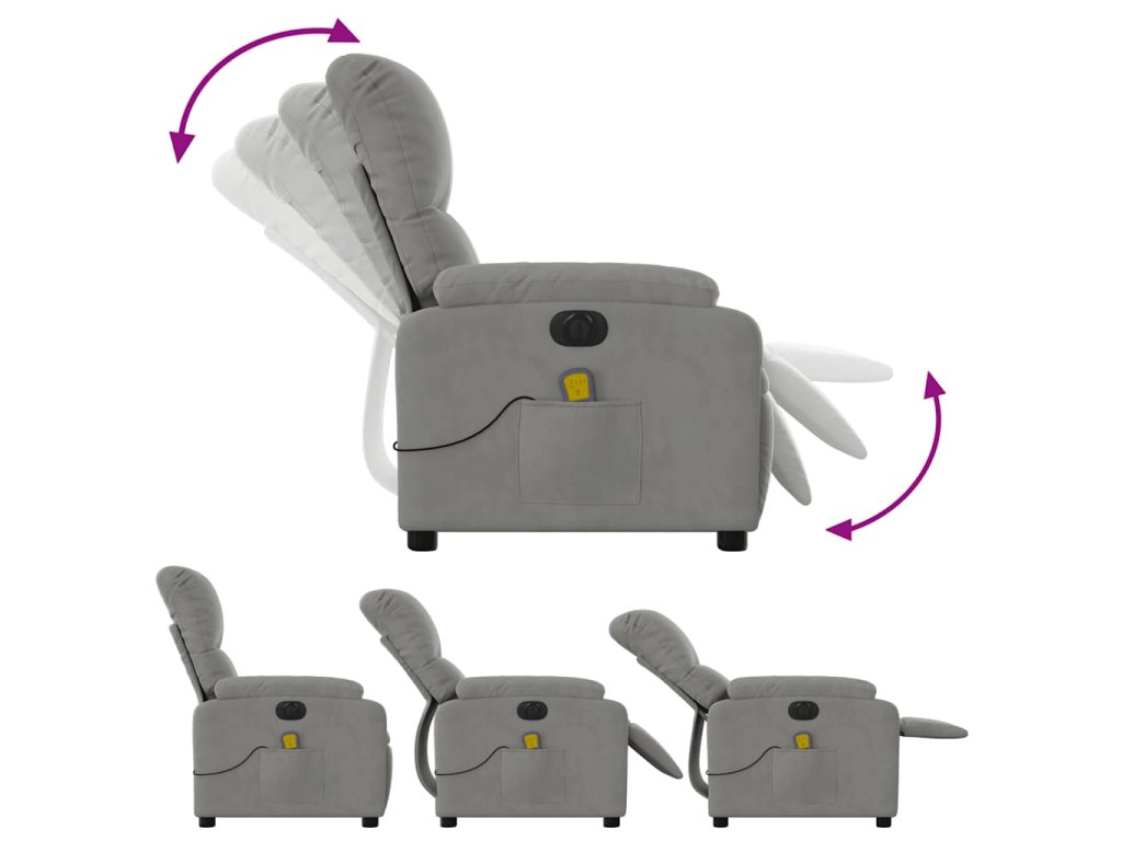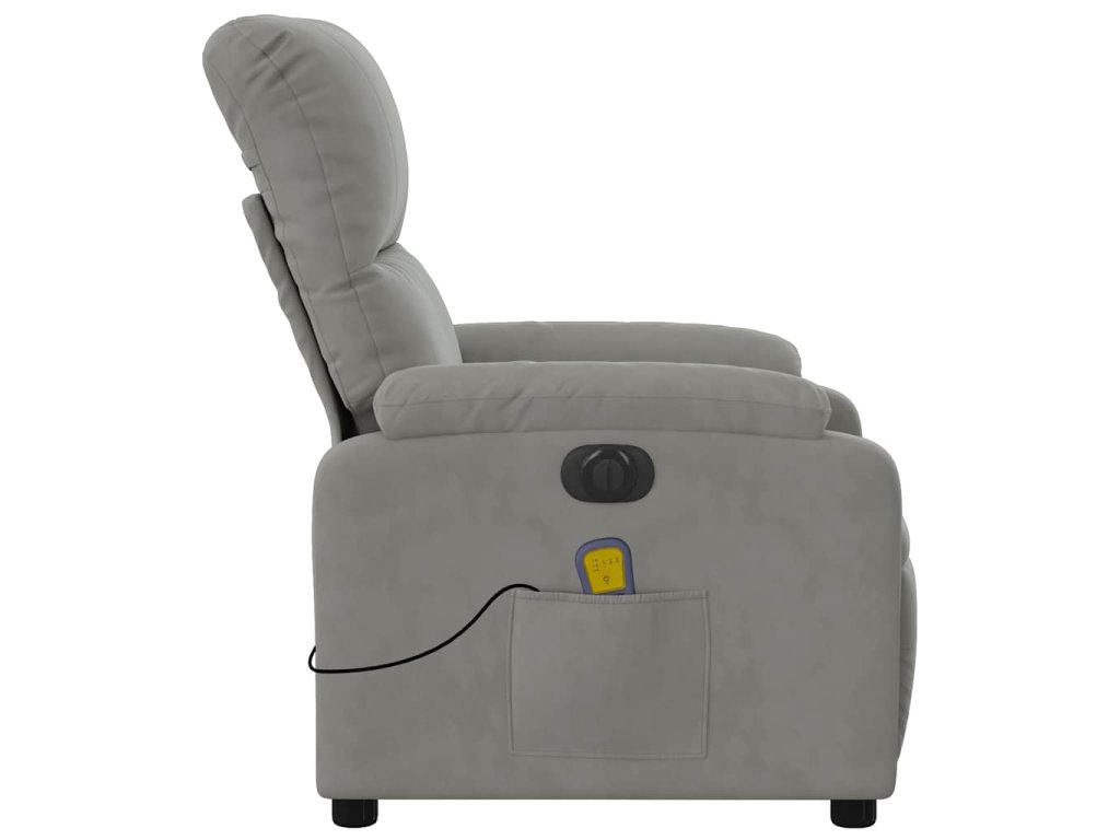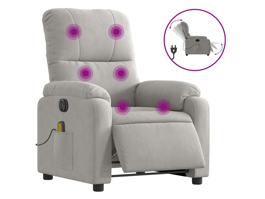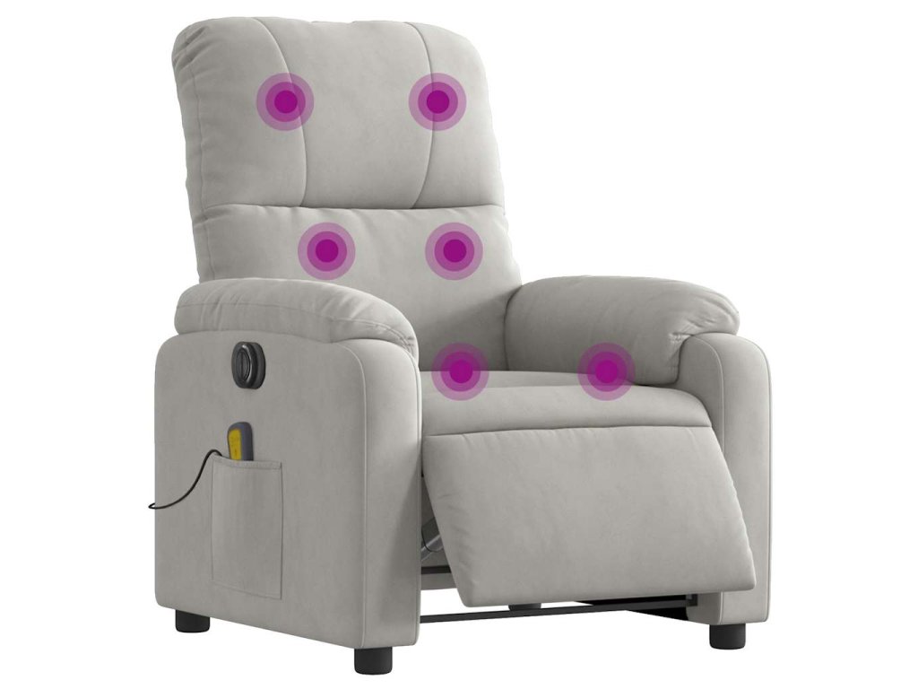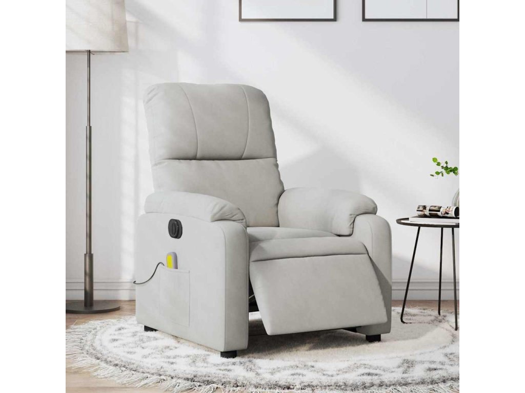 Elektrické masážní polohovací křeslo světle šedé mikrovlákno 3204923