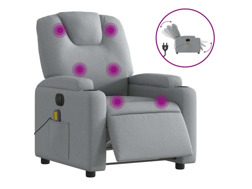 Elektrické masážní polohovací křeslo světle šedé textil 3204356