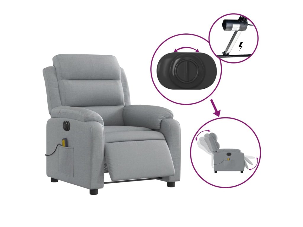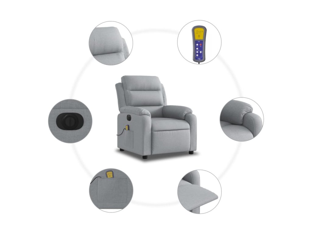 Elektrické masážní polohovací křeslo světle šedé textil 3204968