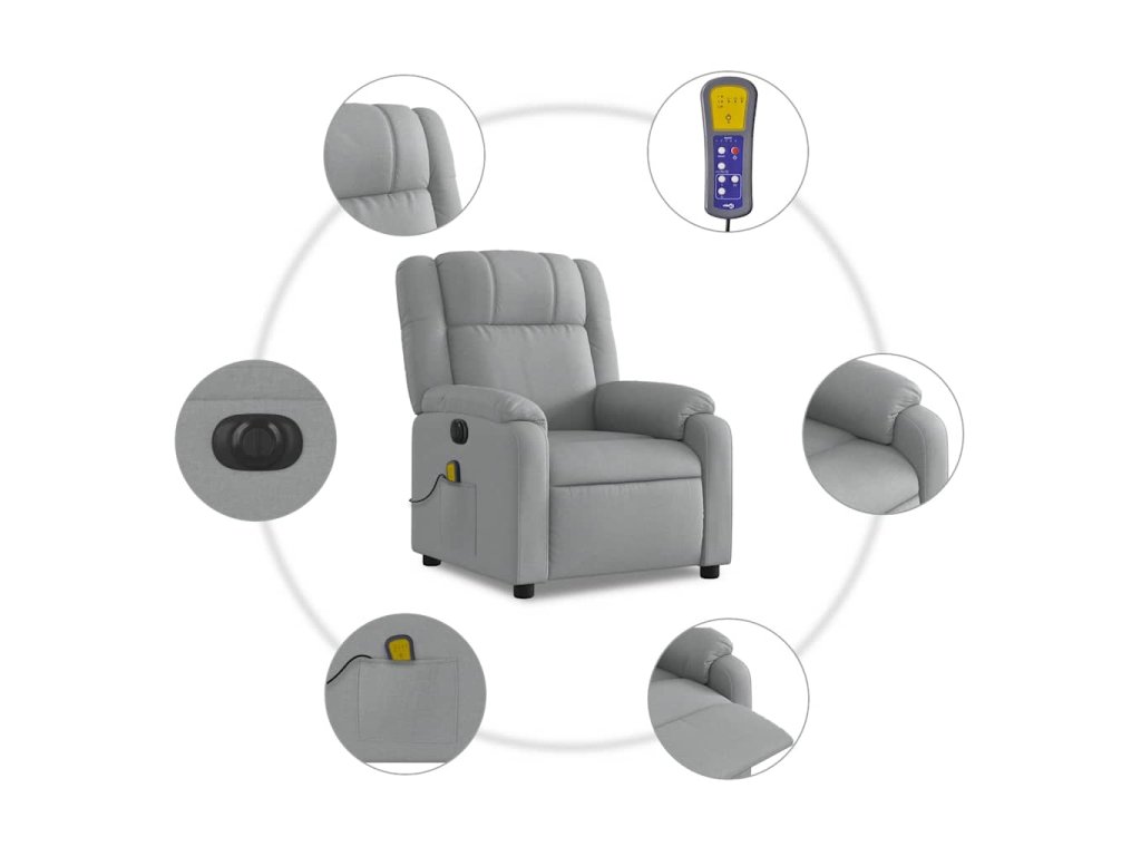Elektrické masážní polohovací křeslo světle šedé textil 3205190