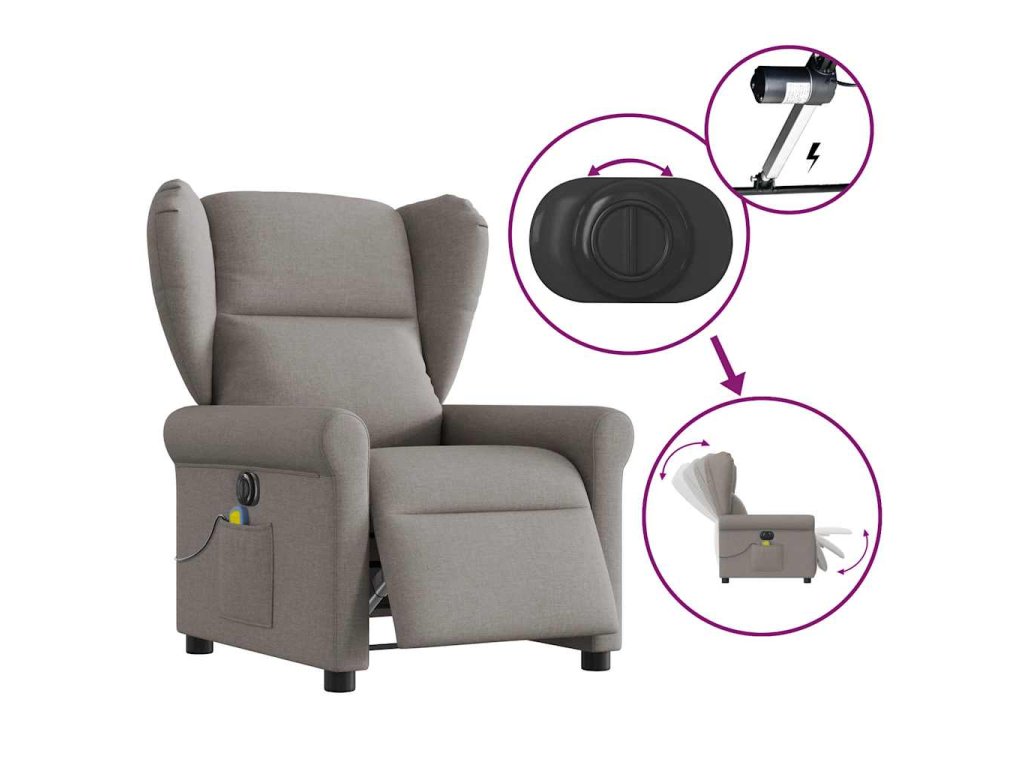 Elektrické masážní polohovací křeslo taupe textil 3303371