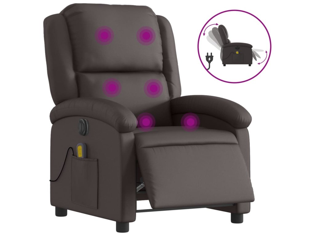 Elektrické masážní polohovací křeslo tmavě hnědé pravá kůže 3204259
