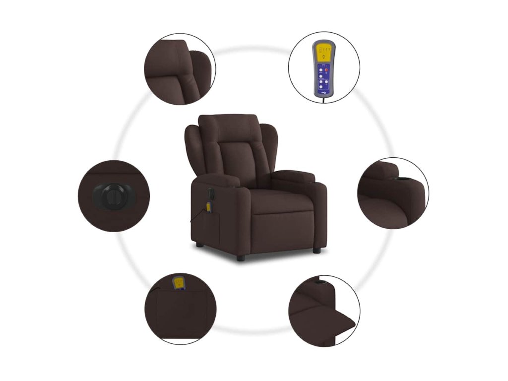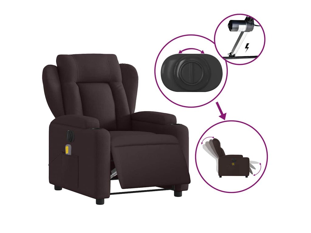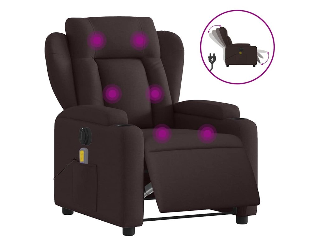 Elektrické masážní polohovací křeslo tmavě hnědé textil 3204475