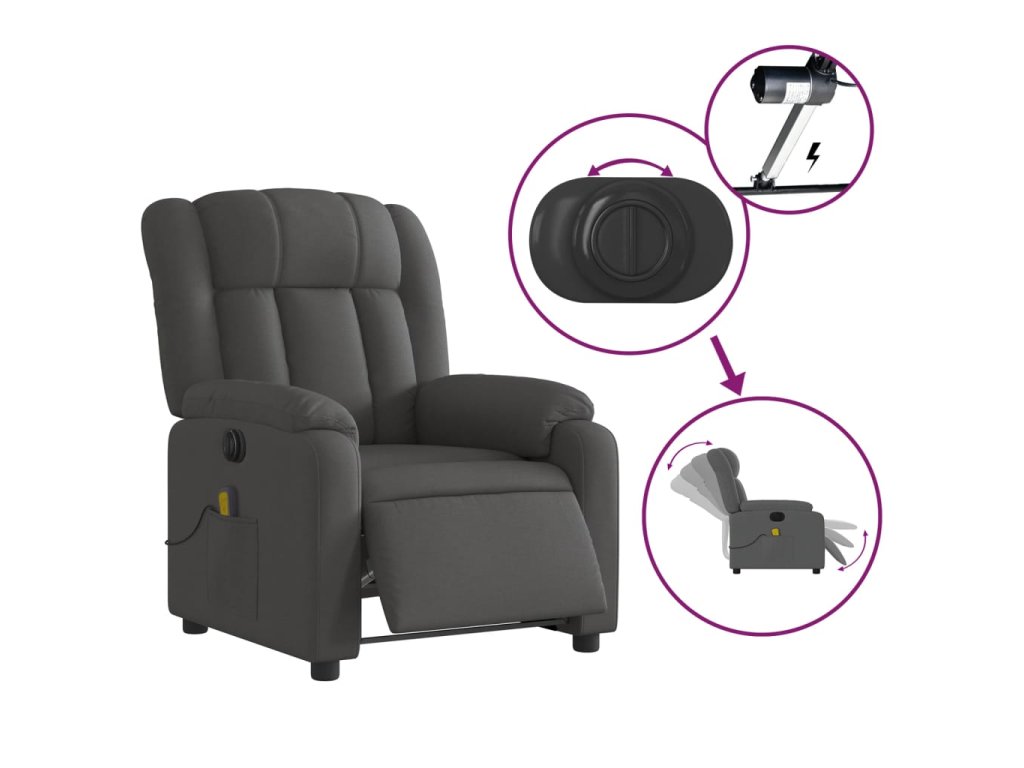 Elektrické masážní polohovací křeslo tmavě šedé textil 3205305