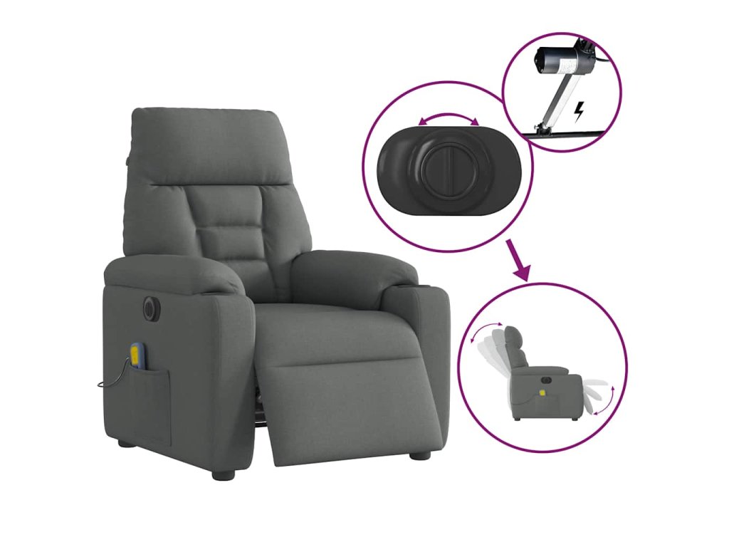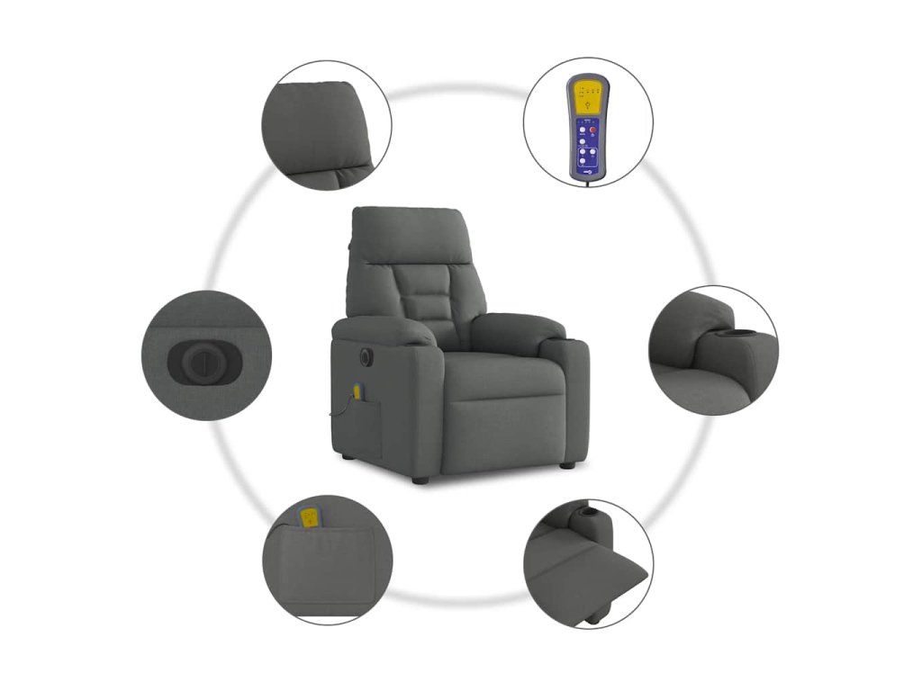 Elektrické masážní polohovací křeslo tmavě šedé textil 3303023