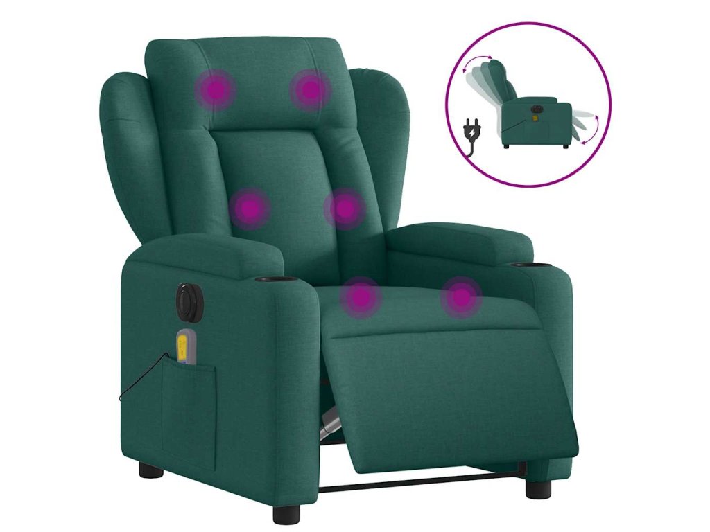 Elektrické masážní polohovací křeslo tmavě zelené textil 3204476