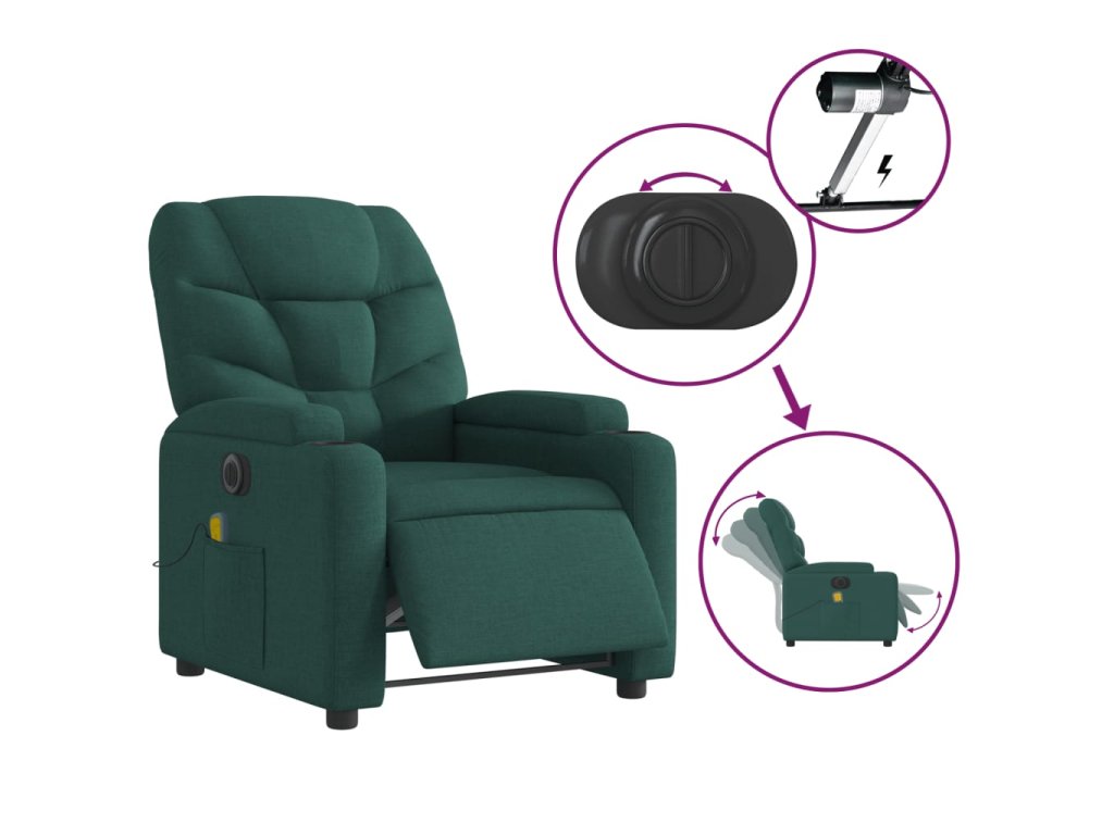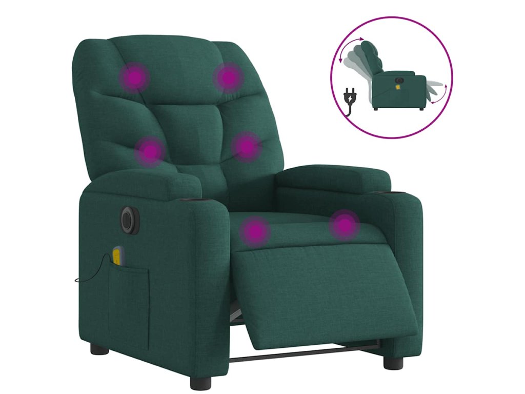 Elektrické masážní polohovací křeslo tmavě zelené textil 3204590