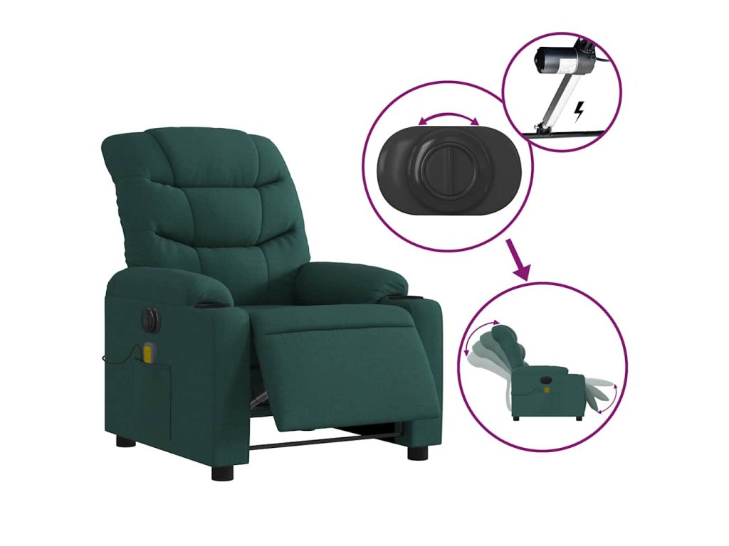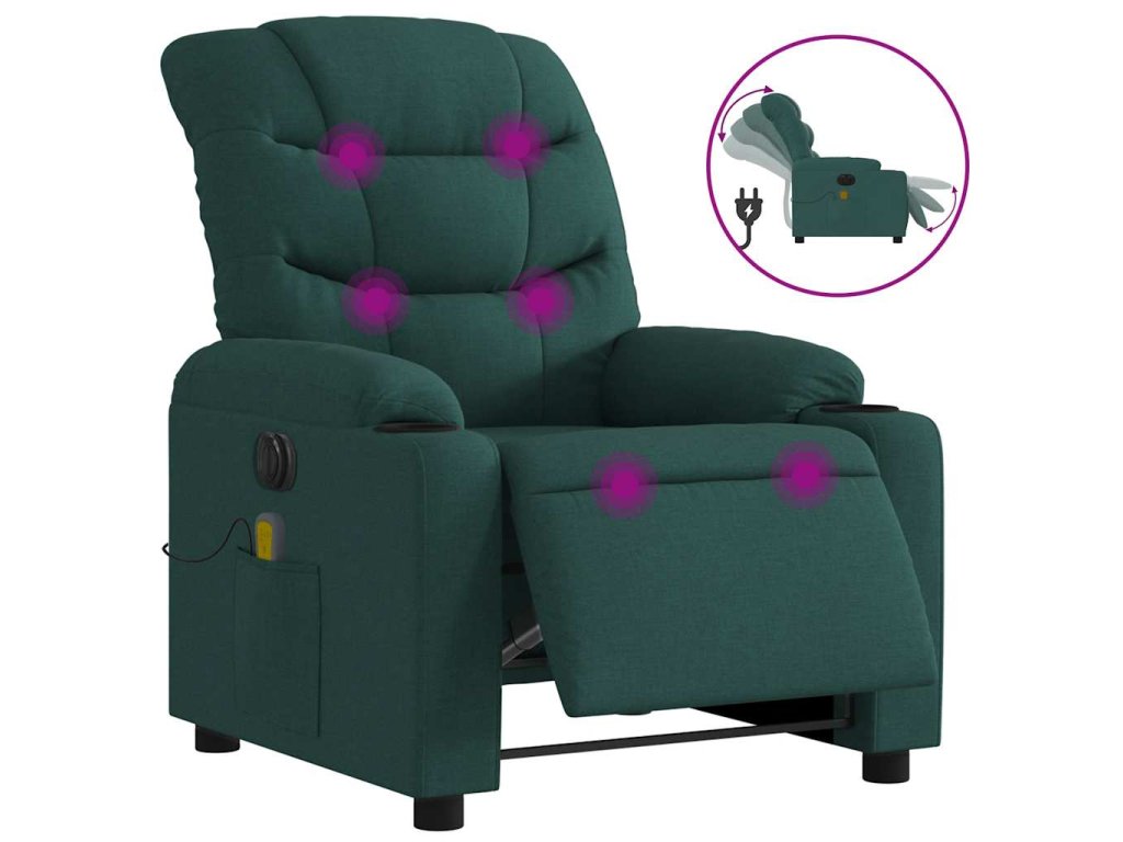Elektrické masážní polohovací křeslo tmavě zelené textil 3206642