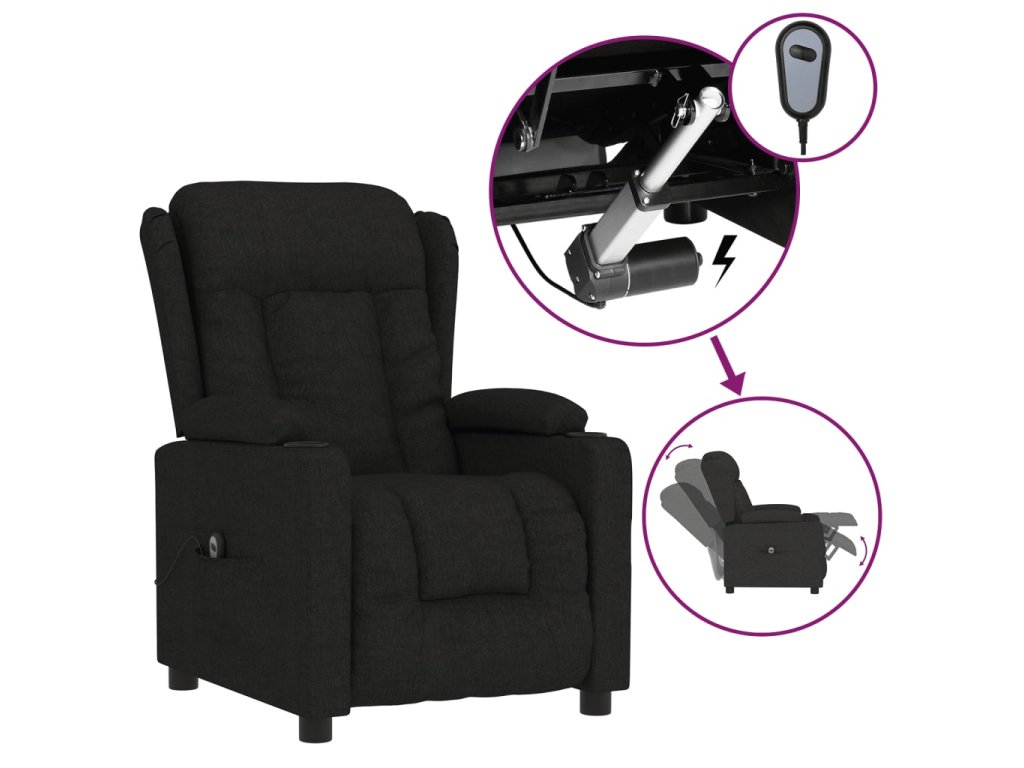 Elektrické polohovací křeslo černé textil 3098779