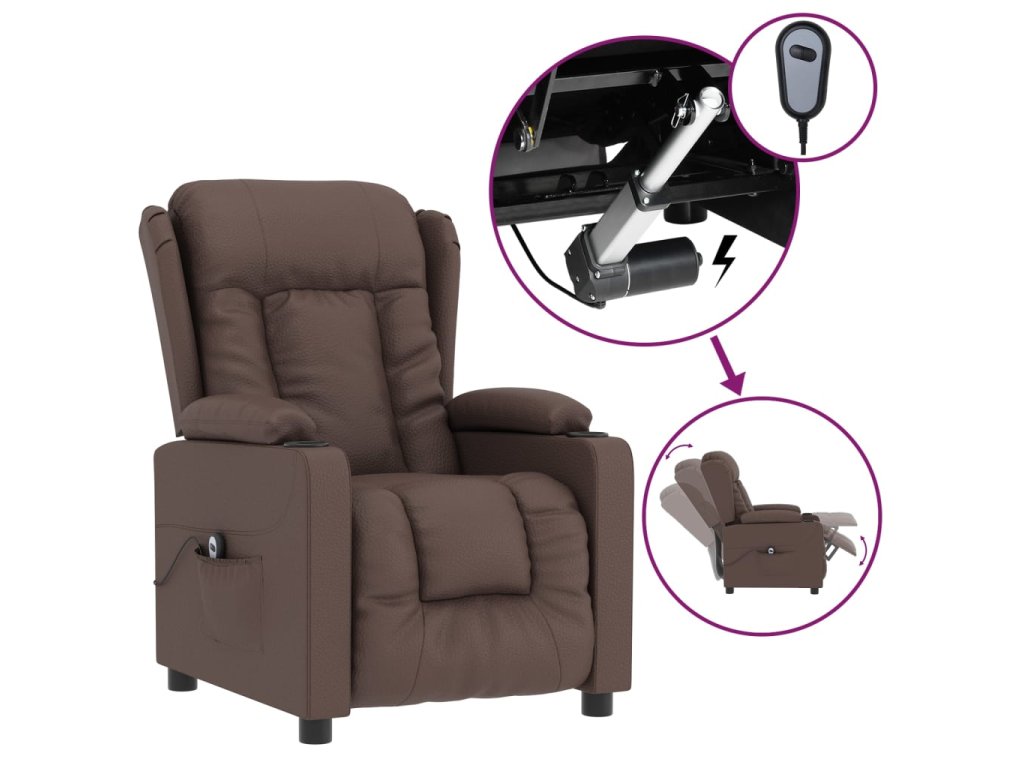 Elektrické polohovací křeslo hnědé umělá kůže 3098802