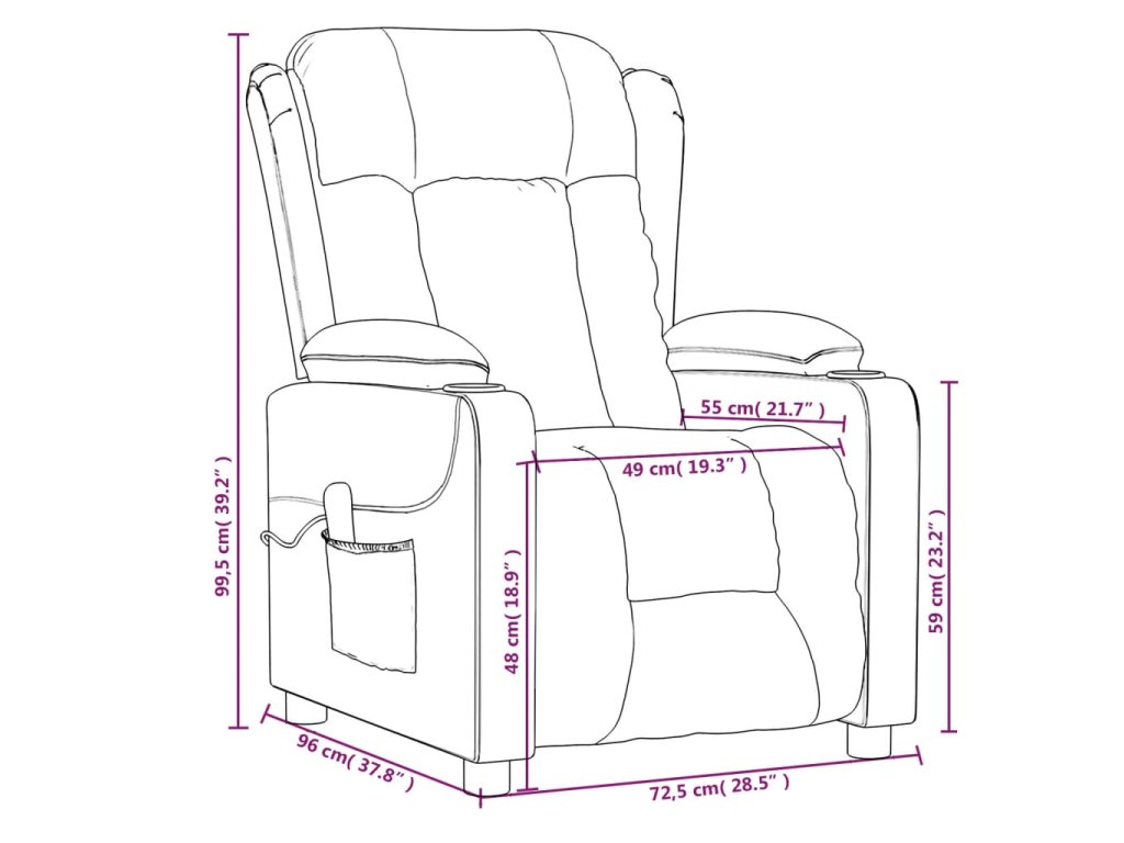 - Rozměry sklopeného křesla: 72,5 x 136,5 x 81 cm (Š x H x V)