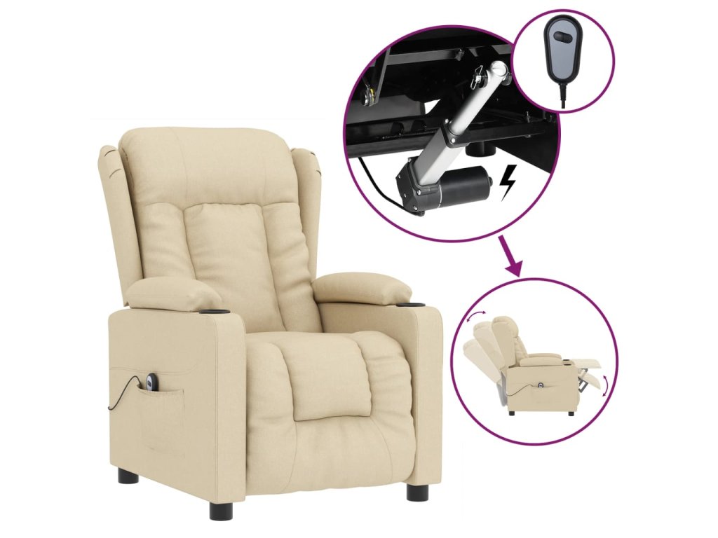 Elektrické polohovací křeslo krémové textil 3098786