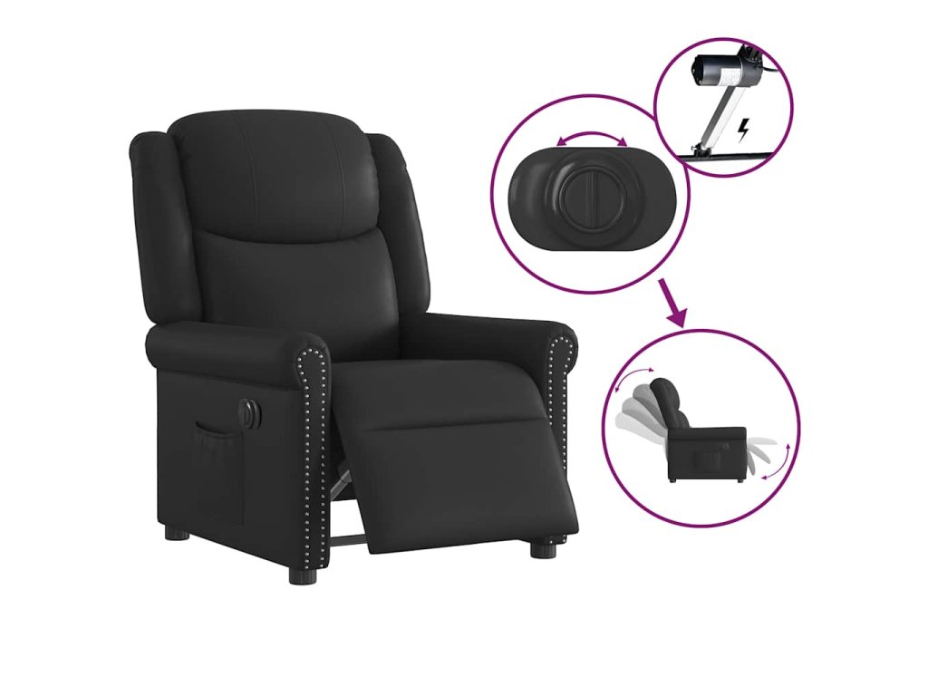 Elektrické polohovací křeslo lesklé černé umělá kůže 3303414