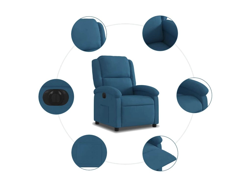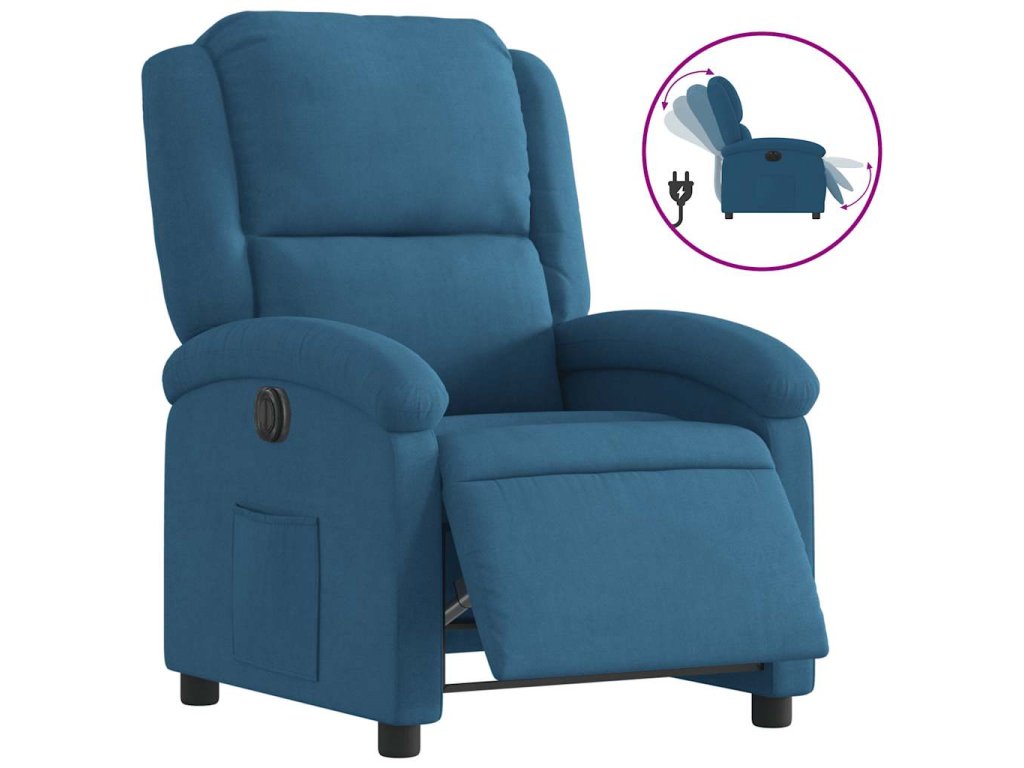 Elektrické polohovací křeslo modré samet 3204288