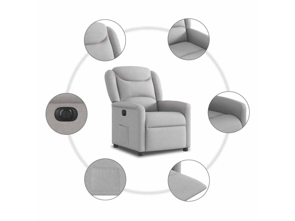 Elektrické polohovací křeslo obláčkově šedé textil 3303183