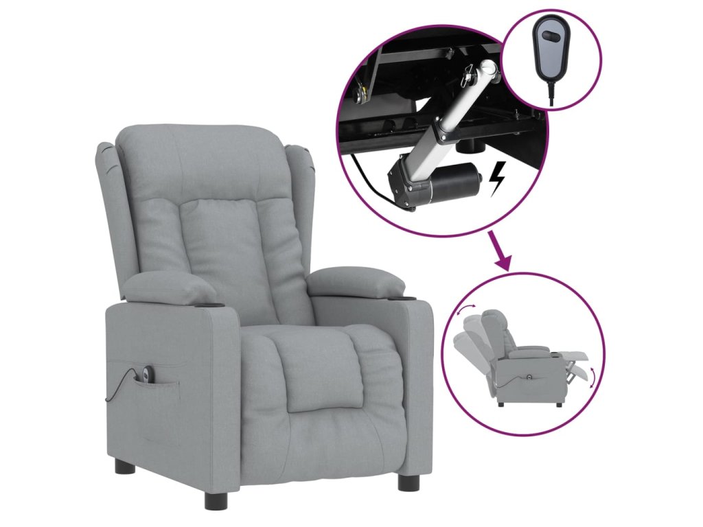 Elektrické polohovací křeslo světle šedé textil 3098777