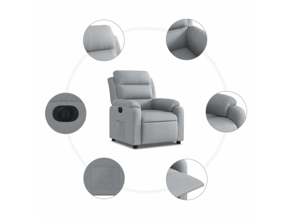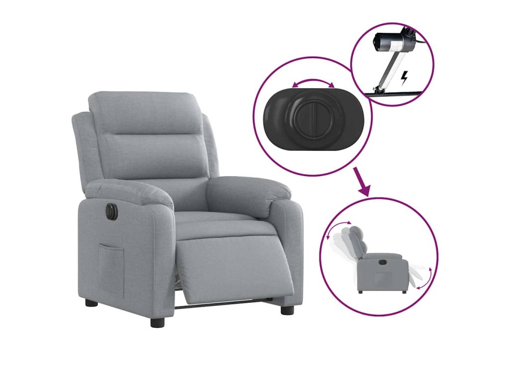 Elektrické polohovací křeslo světle šedé textil 3204956