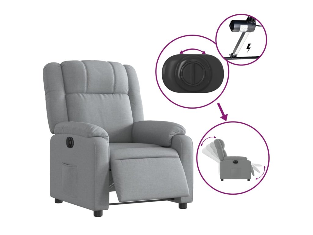 Elektrické polohovací křeslo světle šedé textil 3205178