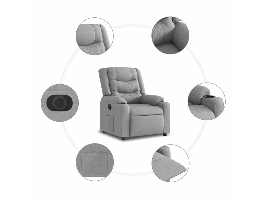 Elektrické polohovací křeslo světle šedé textil 3206567