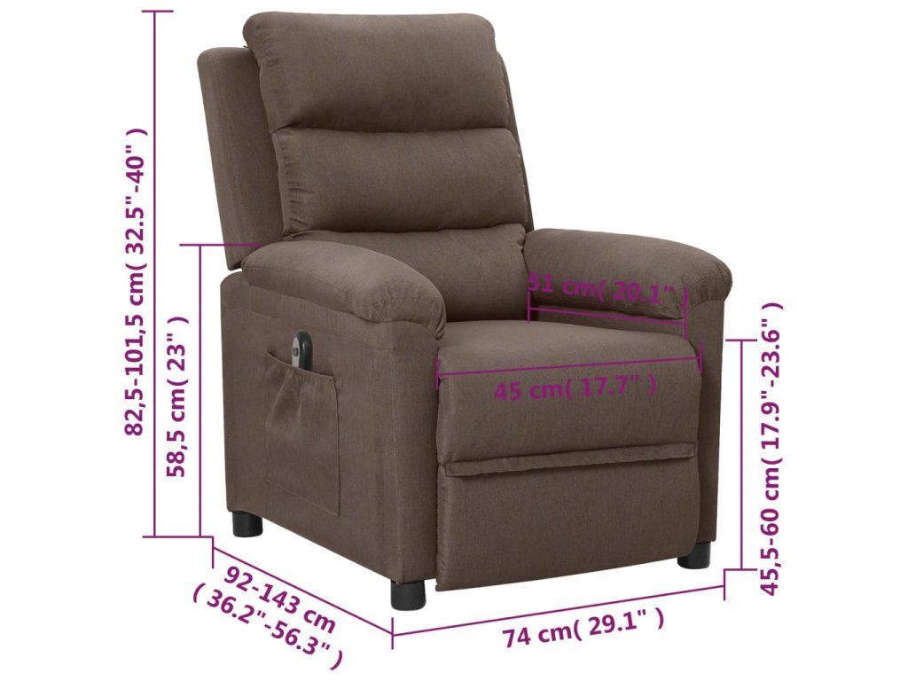 - Elektrická polohovací funkce: Polohovací křeslo je vybaveno elektromotorem pro funkci naklápění. Má 3 polohy naklápění, takže si můžete snadno nastavit opěradlo a podnožku pomocí přiloženého dvoutlačítkového ovladače, jak vám to bude nejlépe vyhovovat.
