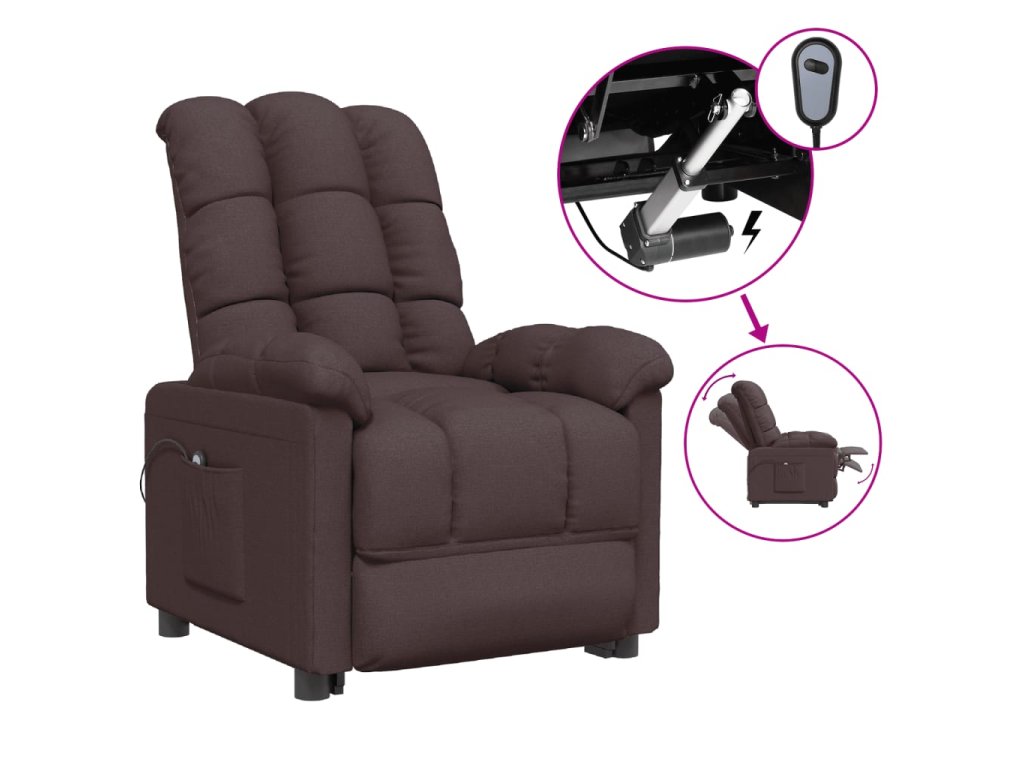 Elektrické polohovací křeslo tmavě hnědé textil 3073753
