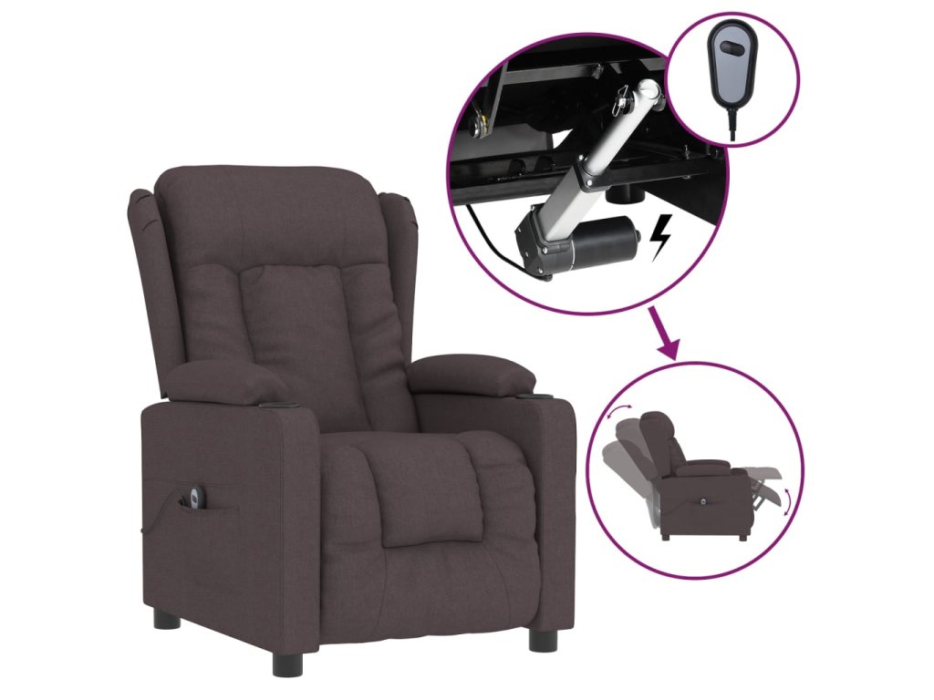 Elektrické polohovací křeslo tmavě hnědé textil 3098782