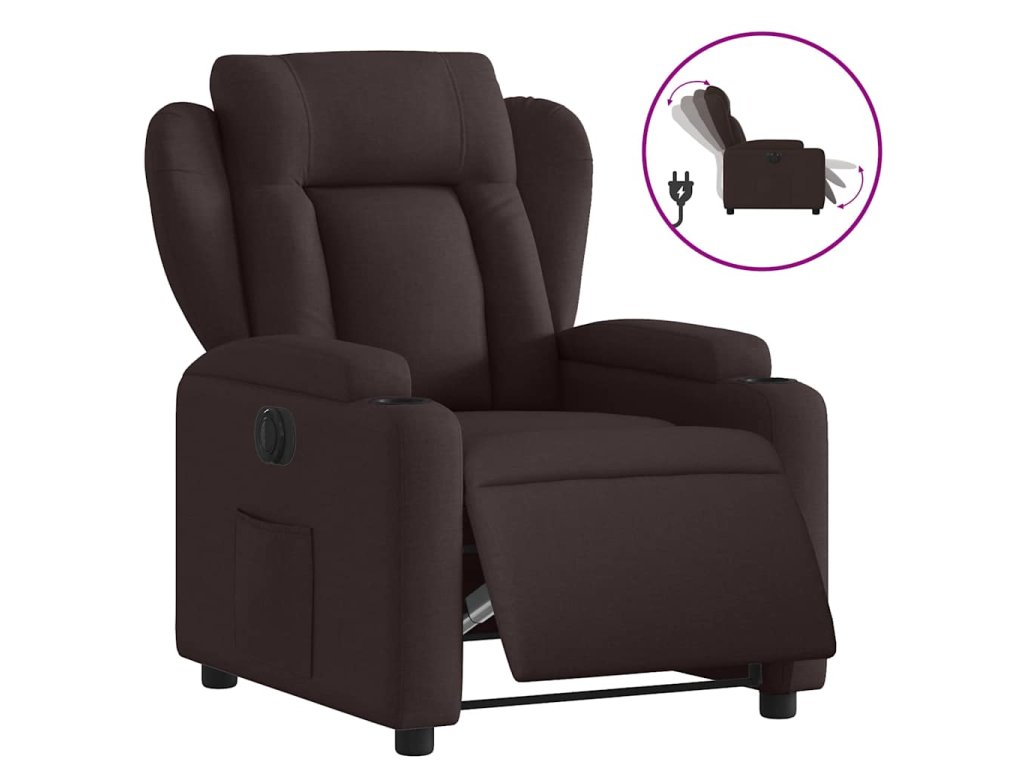 Elektrické polohovací křeslo tmavě hnědé textil 3204463