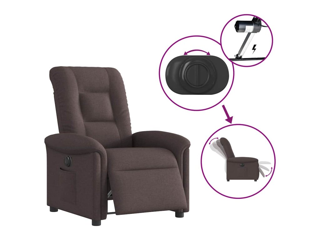 Elektrické polohovací křeslo tmavě hnědé textil 3303239