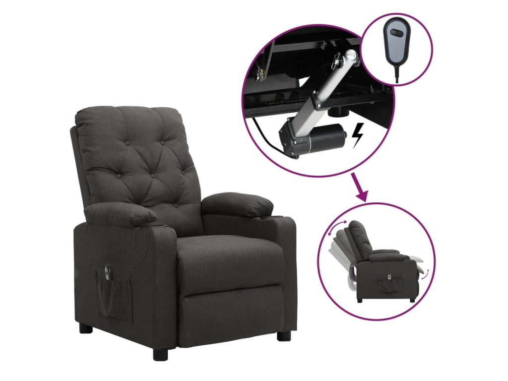 Elektrické polohovací křeslo tmavě šedé textil 3098840