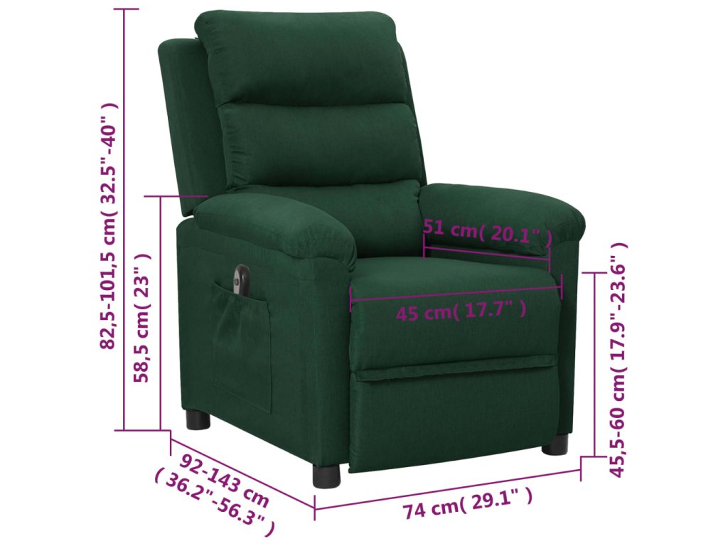 Elektrické polohovací křeslo tmavě zelené textil 3098969