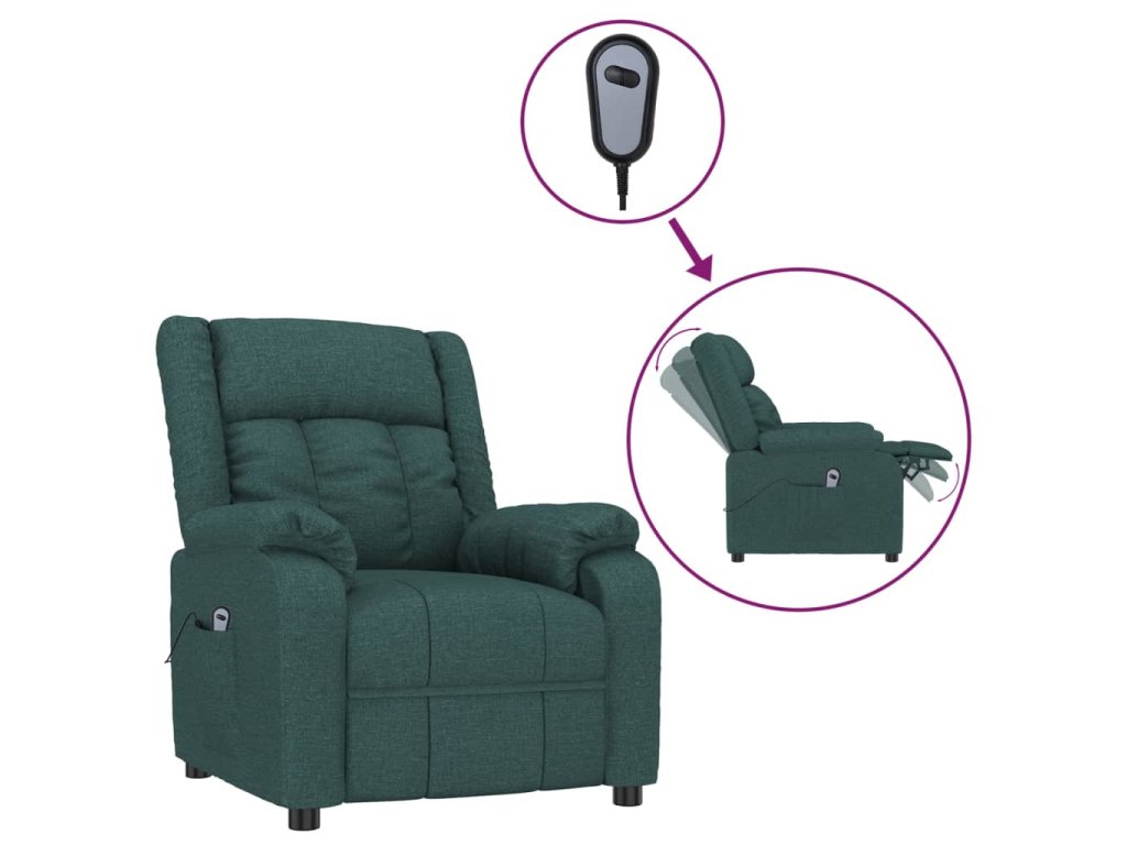 Elektrické polohovací křeslo tmavě zelené textil 3143573