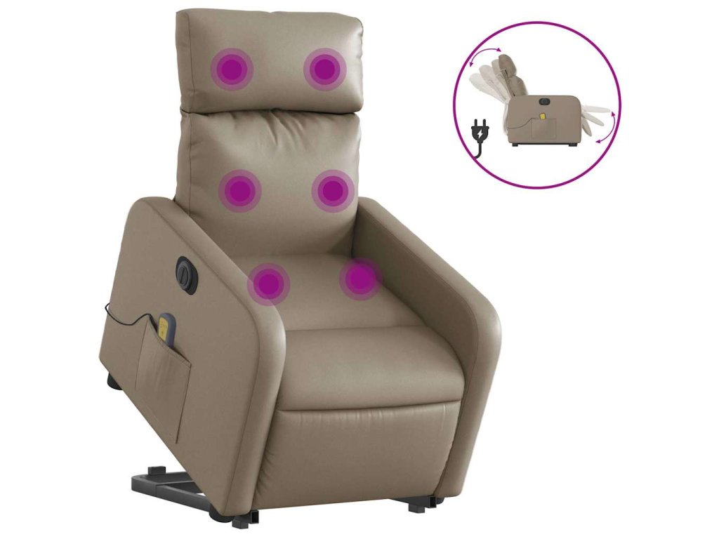 Elektrické zvedací masážní polohovací křeslo cappuccino koženka 3206776