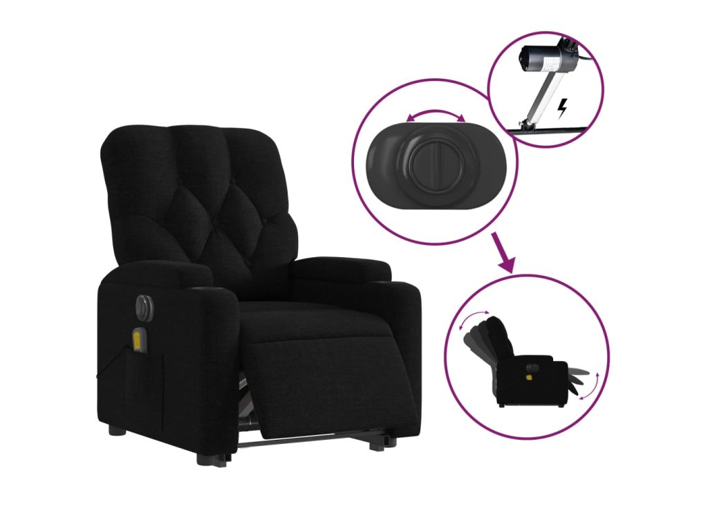 Elektrické zvedací masážní polohovací křeslo černé textil 3204748