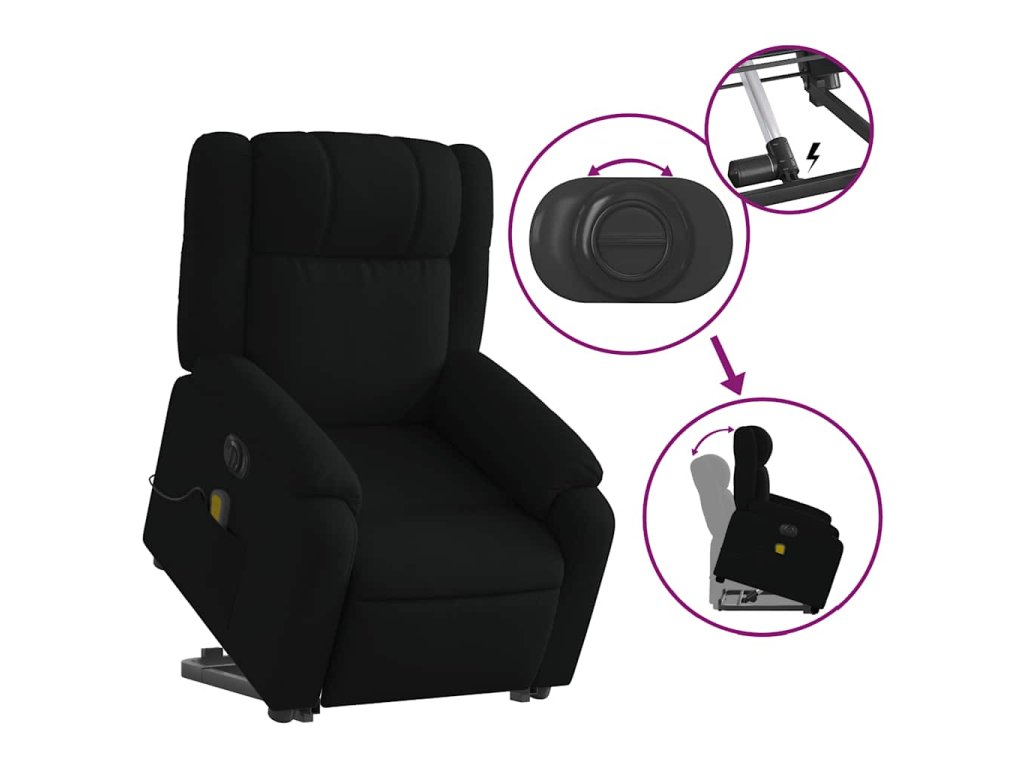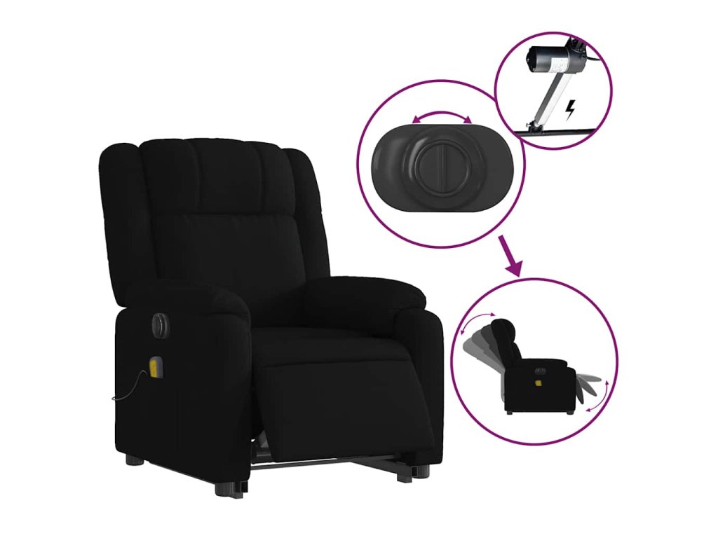 Elektrické zvedací masážní polohovací křeslo černé textil 3205240
