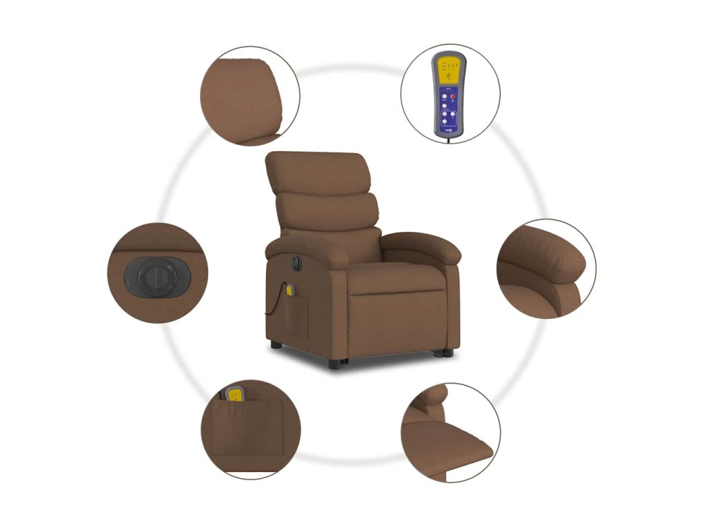 Elektrické zvedací masážní polohovací křeslo hnědé textil 3204018