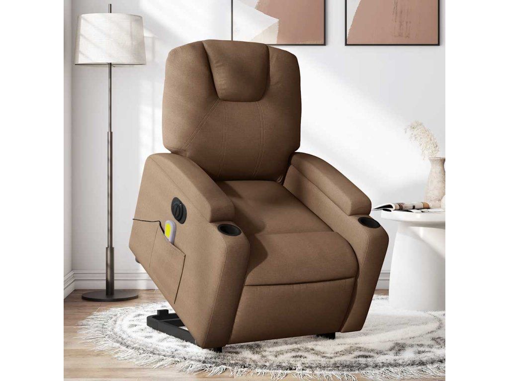 Elektrické zvedací masážní polohovací křeslo hnědé textil 3204408
