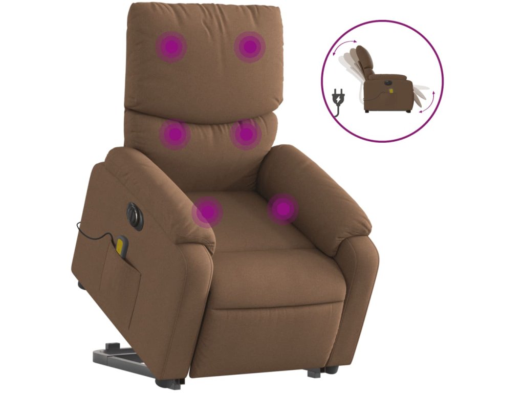 Elektrické zvedací masážní polohovací křeslo hnědé textil 3204864