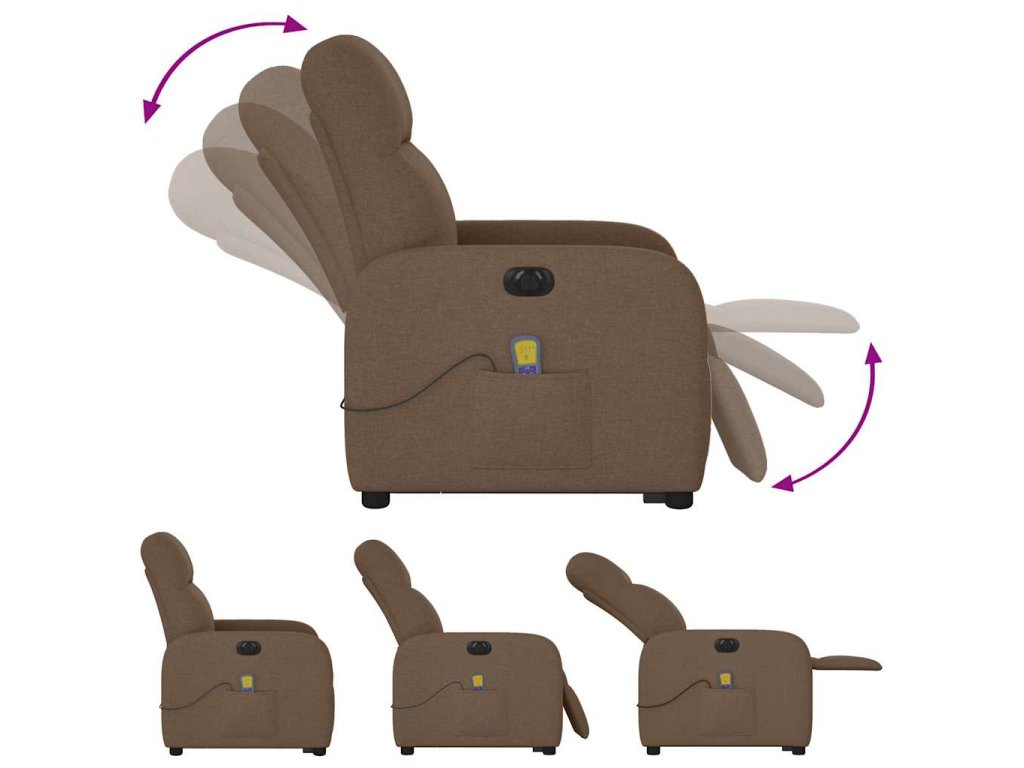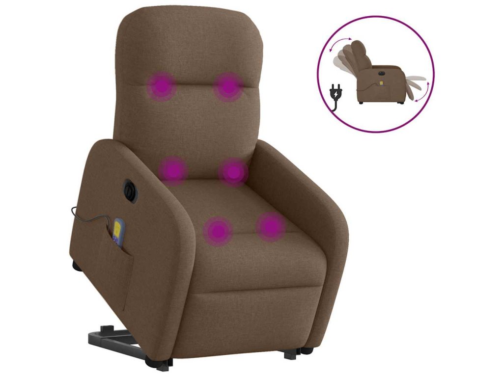 Elektrické zvedací masážní polohovací křeslo hnědé textil 3303006