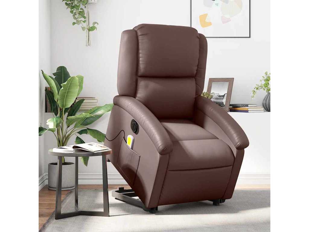 Elektrické zvedací masážní polohovací křeslo hnědé umělá kůže 3204249