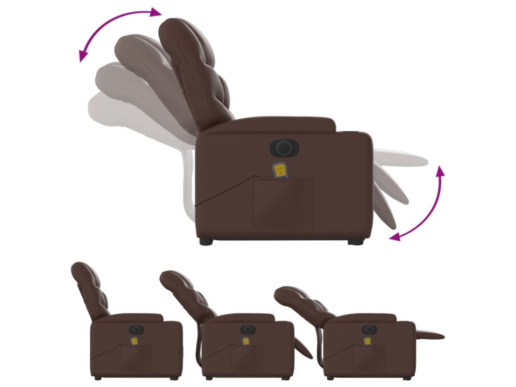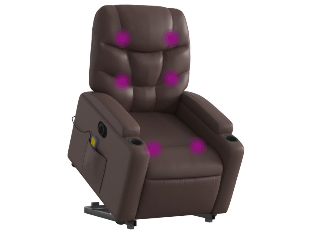 Elektrické zvedací masážní polohovací křeslo hnědé umělá kůže 3204681
