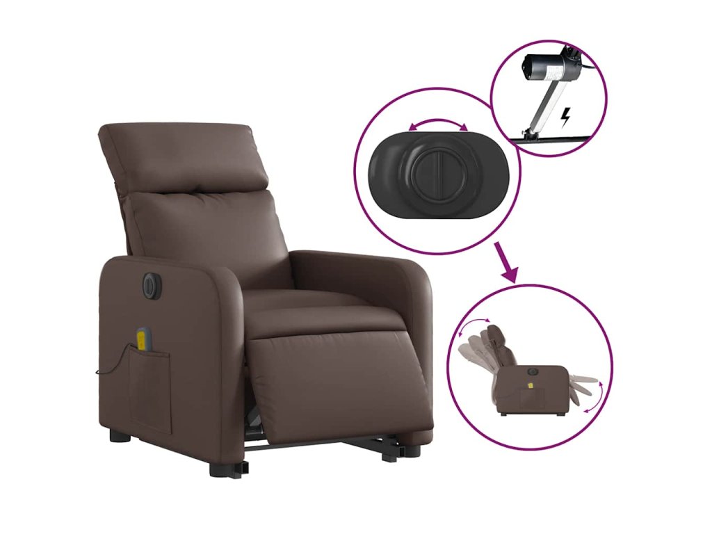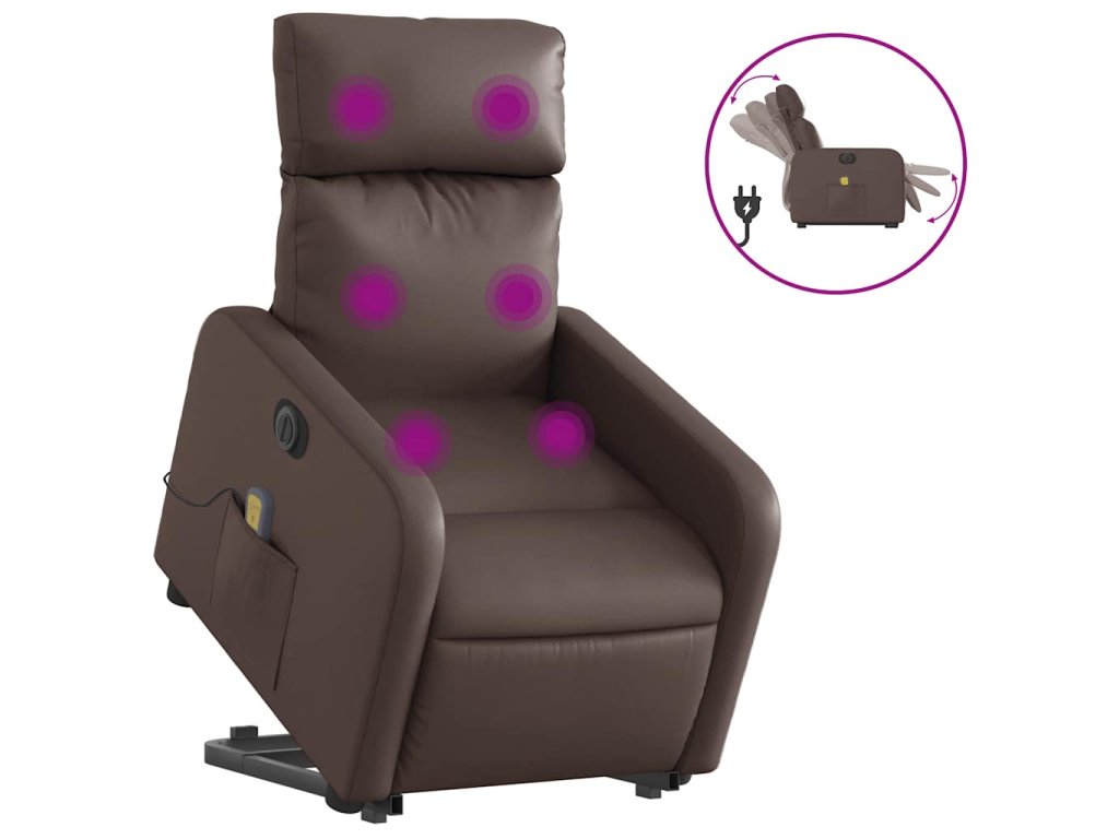 Elektrické zvedací masážní polohovací křeslo hnědé umělá kůže 3206772