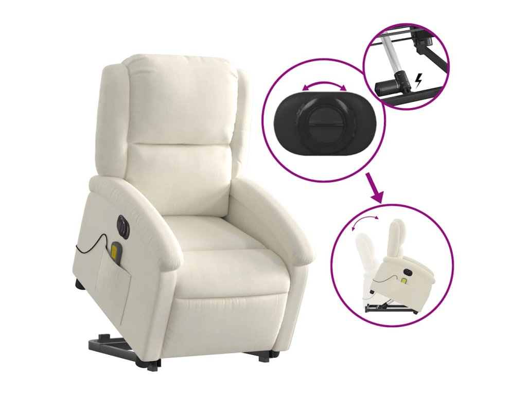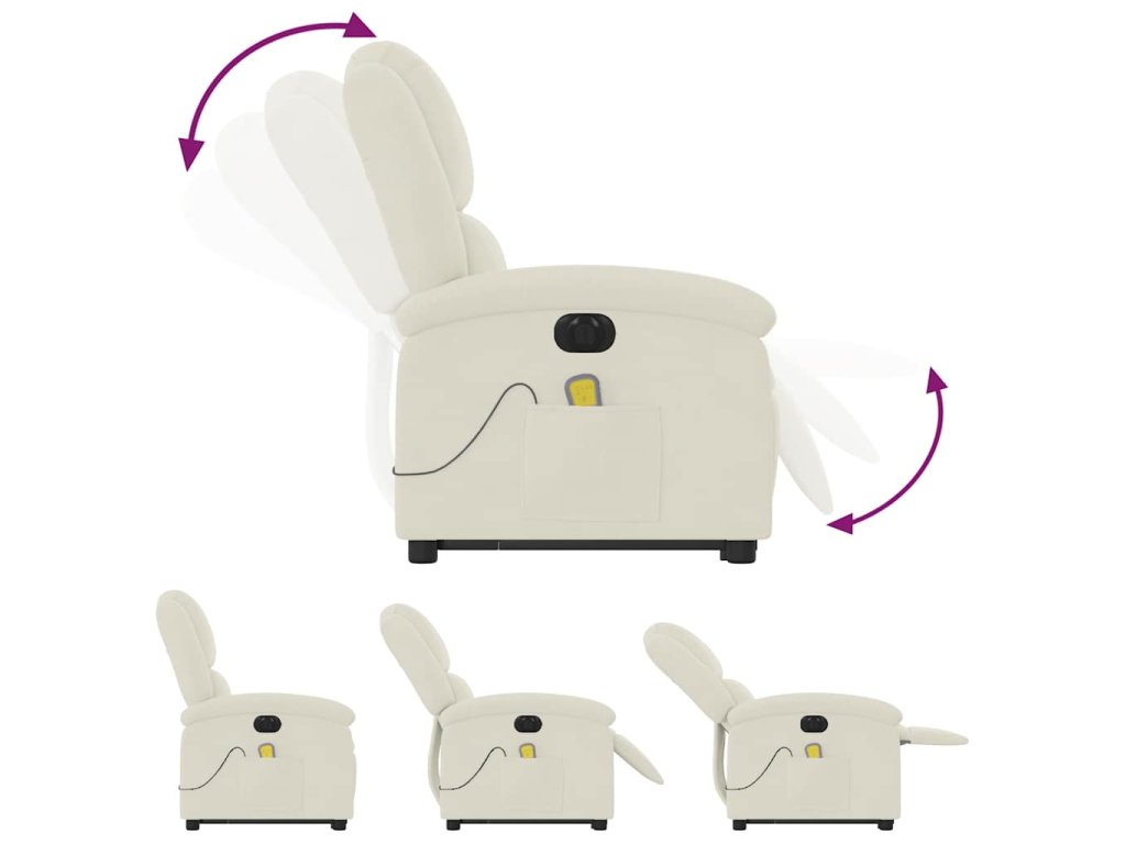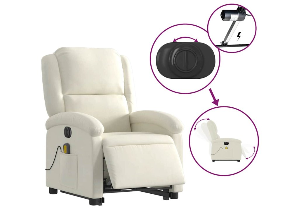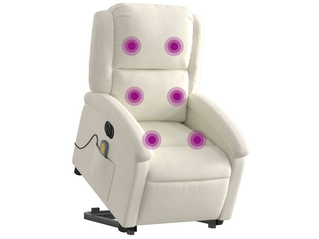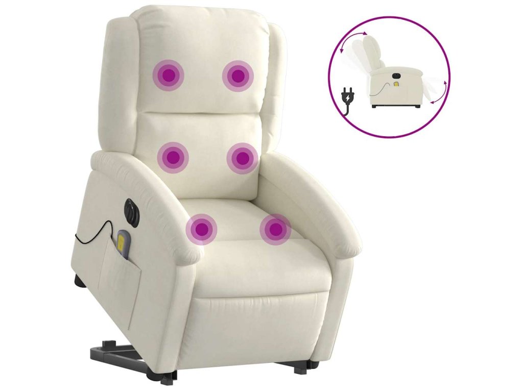 Elektrické zvedací masážní polohovací křeslo krémové samet 3204342