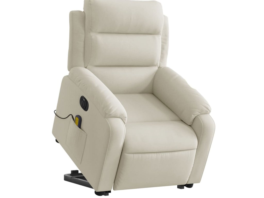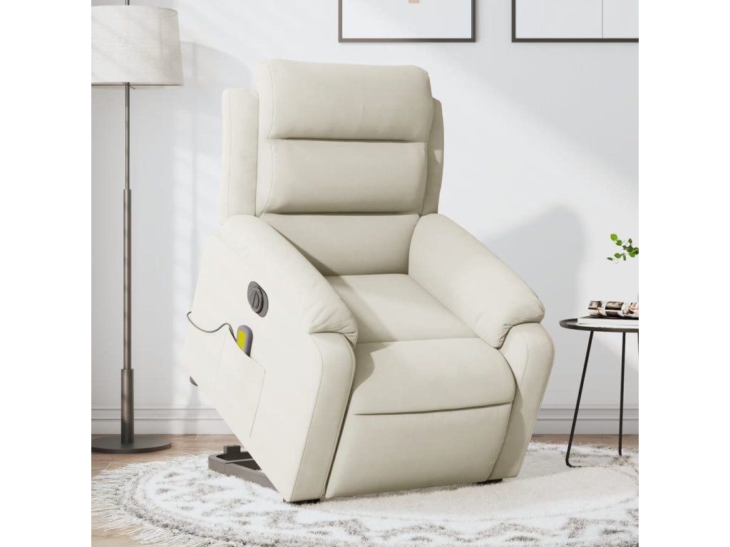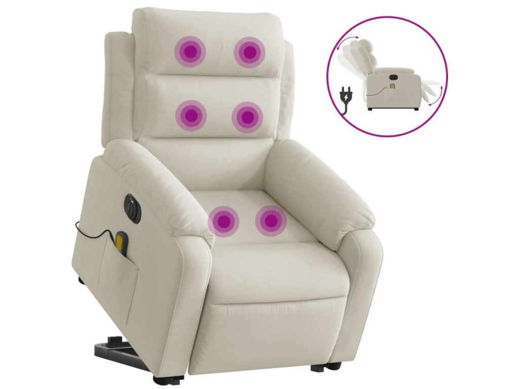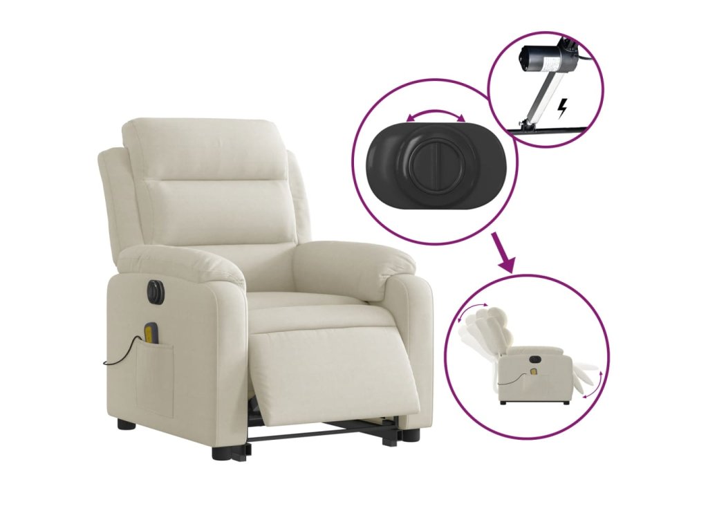 Elektrické zvedací masážní polohovací křeslo krémové samet 3205134