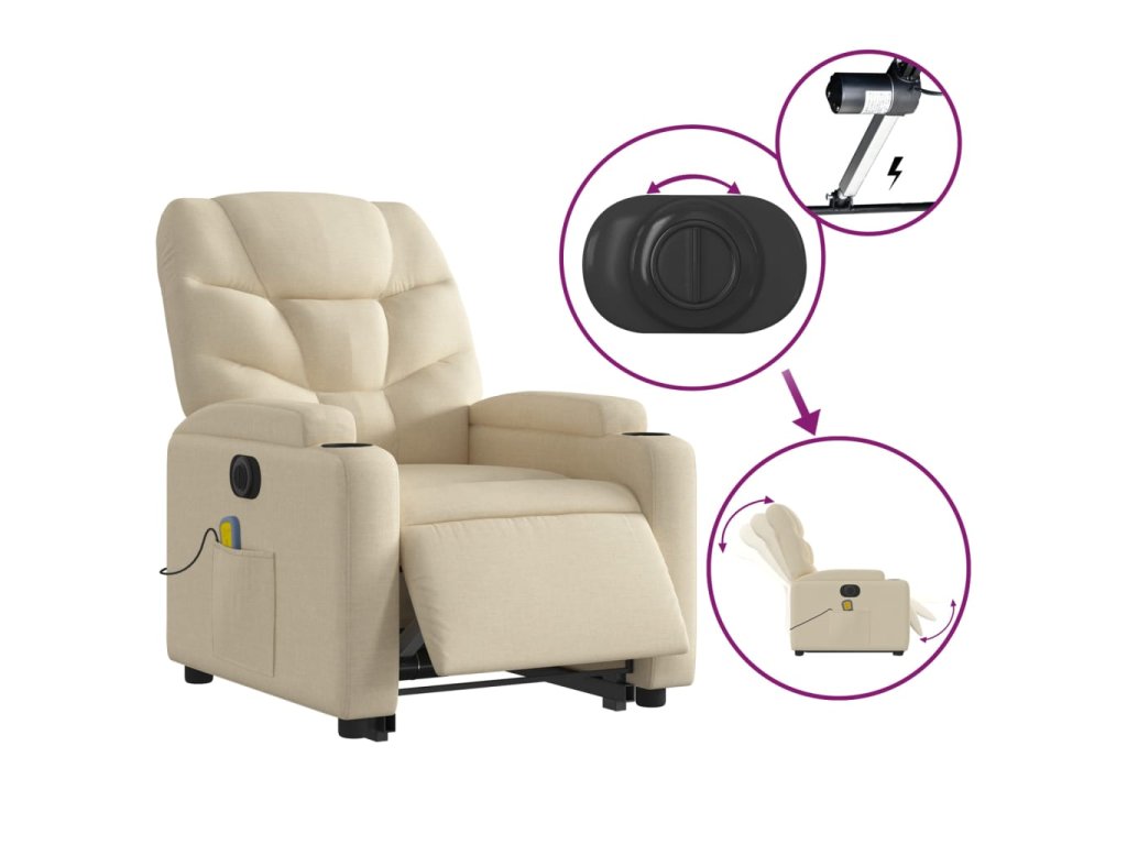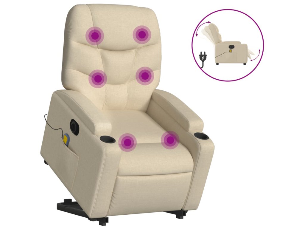 Elektrické zvedací masážní polohovací křeslo krémové textil 3204641