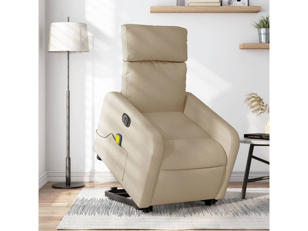 Elektrické zvedací masážní polohovací křeslo krémové textil 3206734